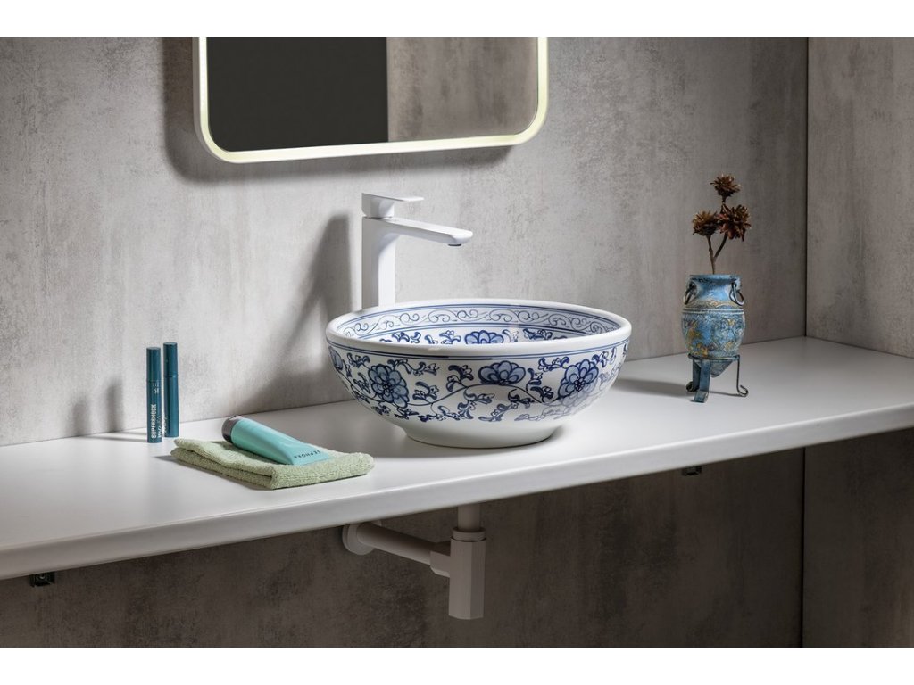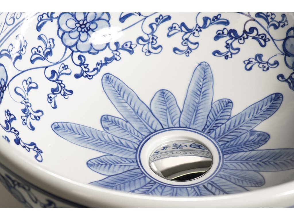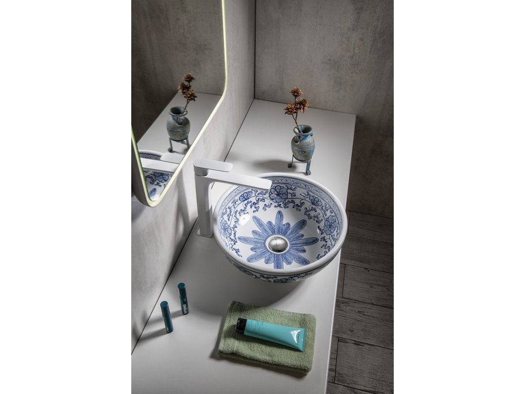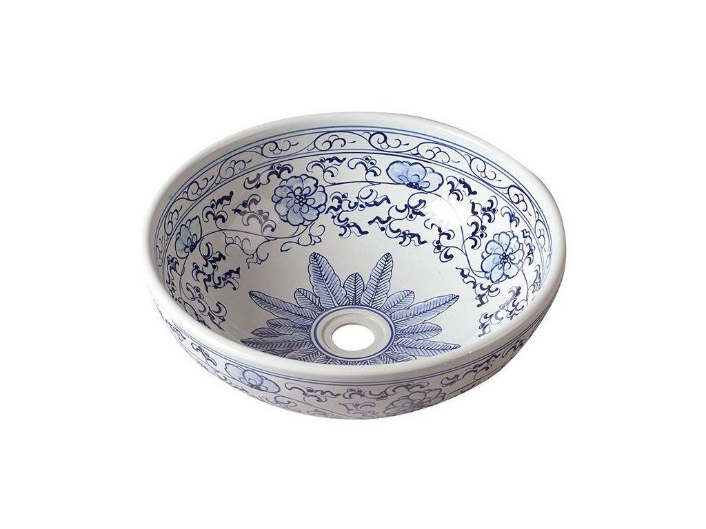 Sapho PRIORI keramické umyvadlo na desku, Ø 41 cm, bílá s modrým vzorem PI012