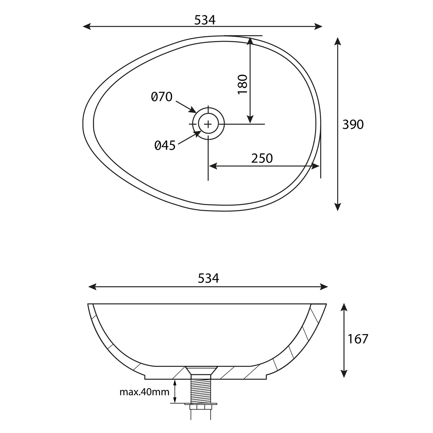Sapho PUNC betonové umyvadlo na desku, včetně výpusti, 53x39cm, bílý pískovec BH7000