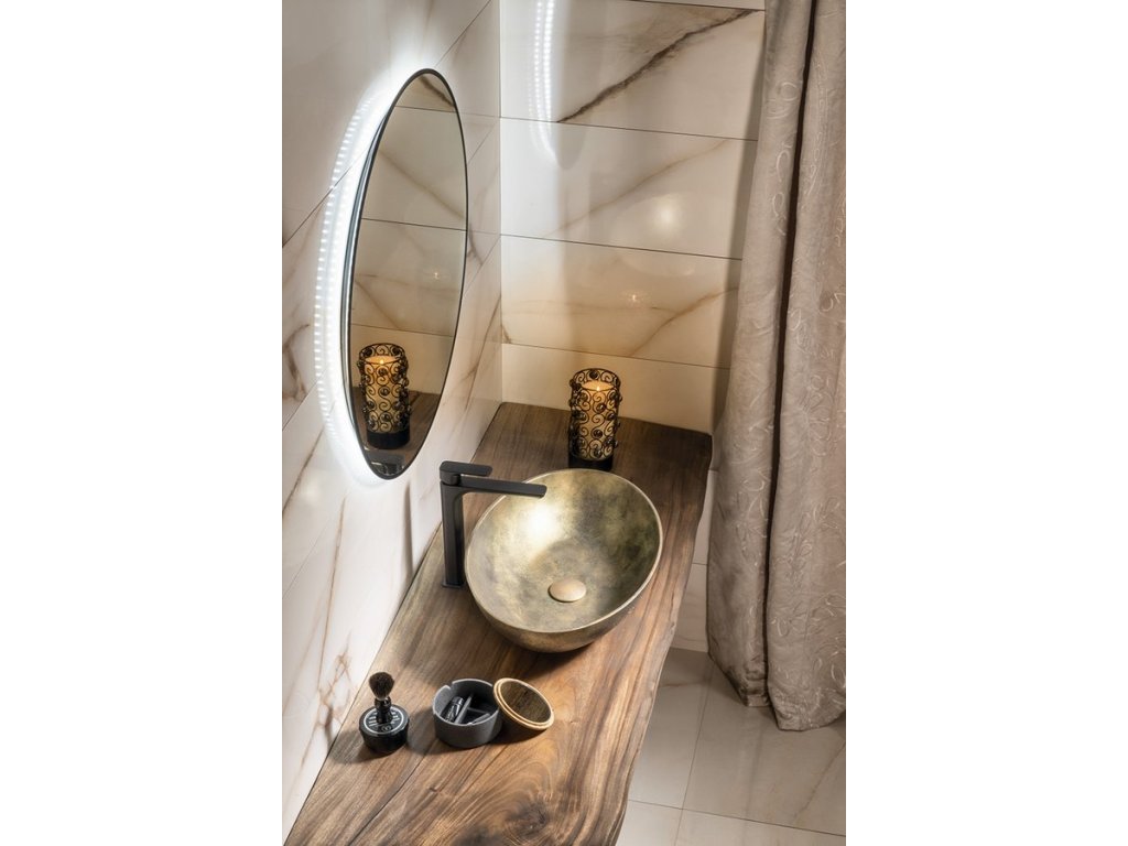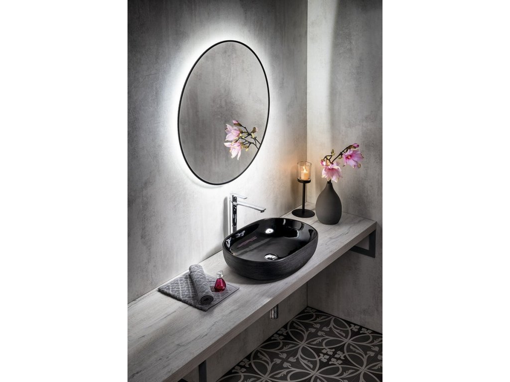 Sapho SHARON kulaté zrcadlo s LED podsvícením ø 80cm, černá mat 31255CI