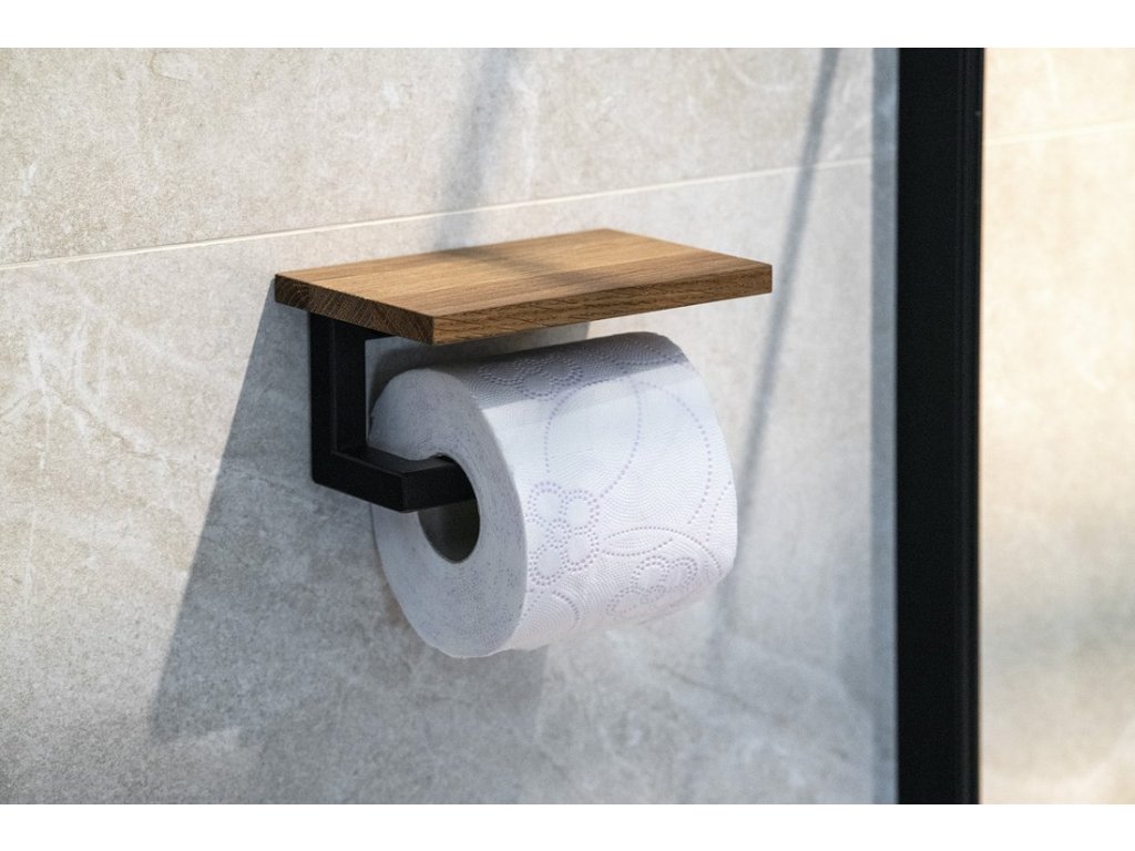 Sapho SKA držák toaletního papíru s poličkou, černá mat/dub SKA421