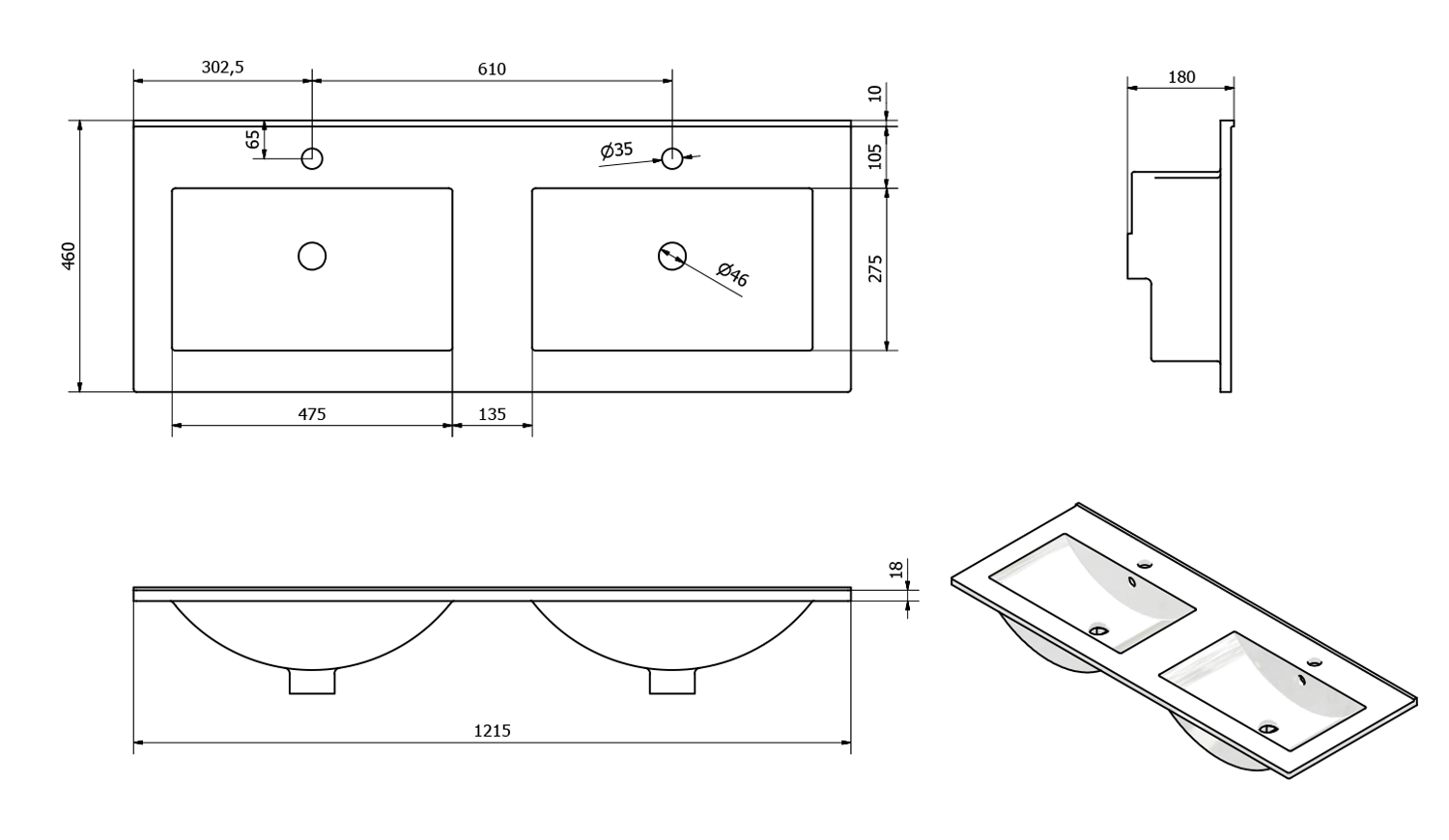 Sapho SLIM keramické dvojumyvadlo, nábytkové, 120x46cm, bílá 1601-120