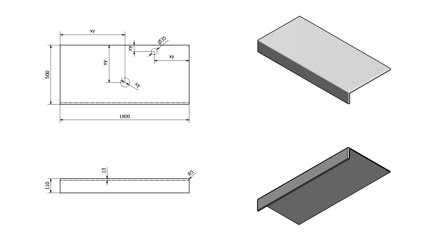 - Možnost dodání s otvory pro baterii a odpad dle výkresu (lze vrtat i v místě instalace)
