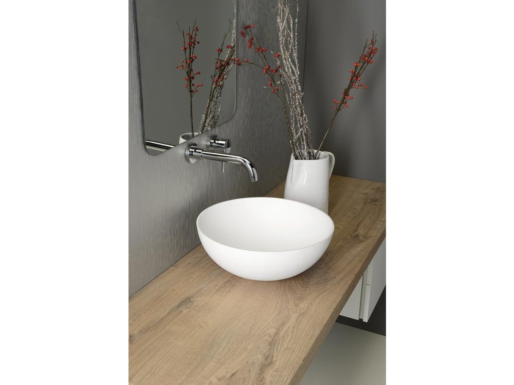 Sapho THIN umyvadlo na desku, Rockstone Ø 39 cm, bílá mat WN185