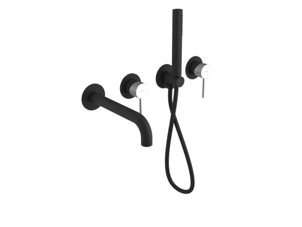 Sapho ULTRASAN podomítková vanová baterie s hubicí a ruční sprchou, 2 výstupy, černá mat/chrom UT093VBC
