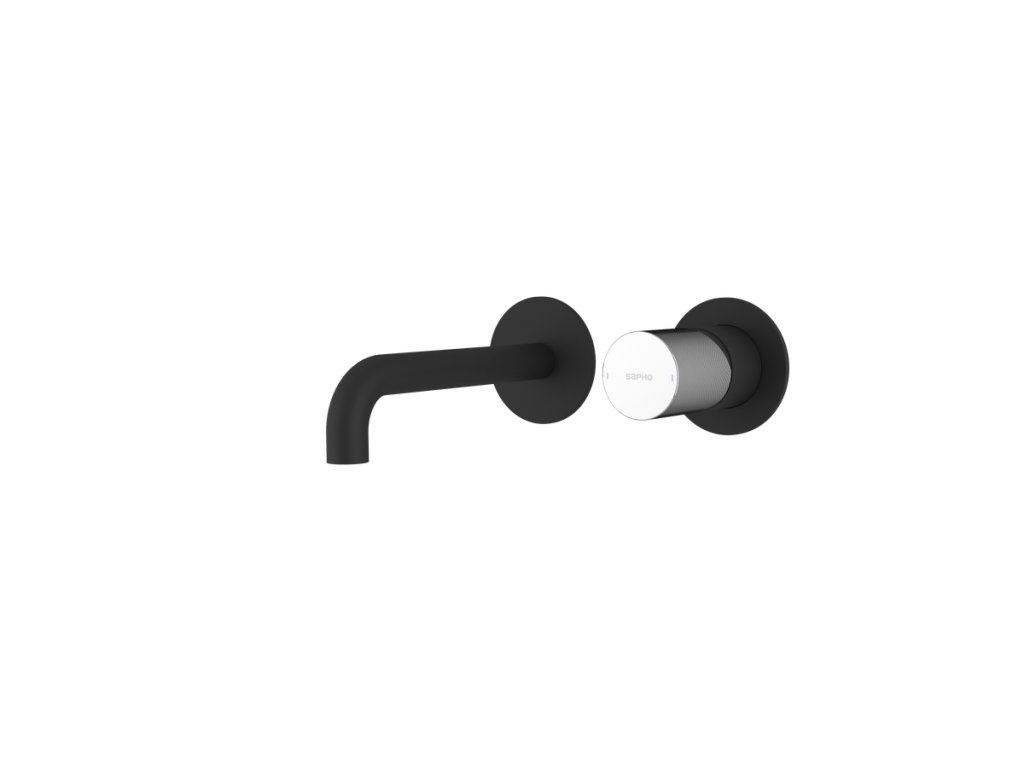 Sapho ULTRATAP podomítková dvouprvková umyvadlová baterie, hubice 20cm, černá mat/chrom UT018TBC