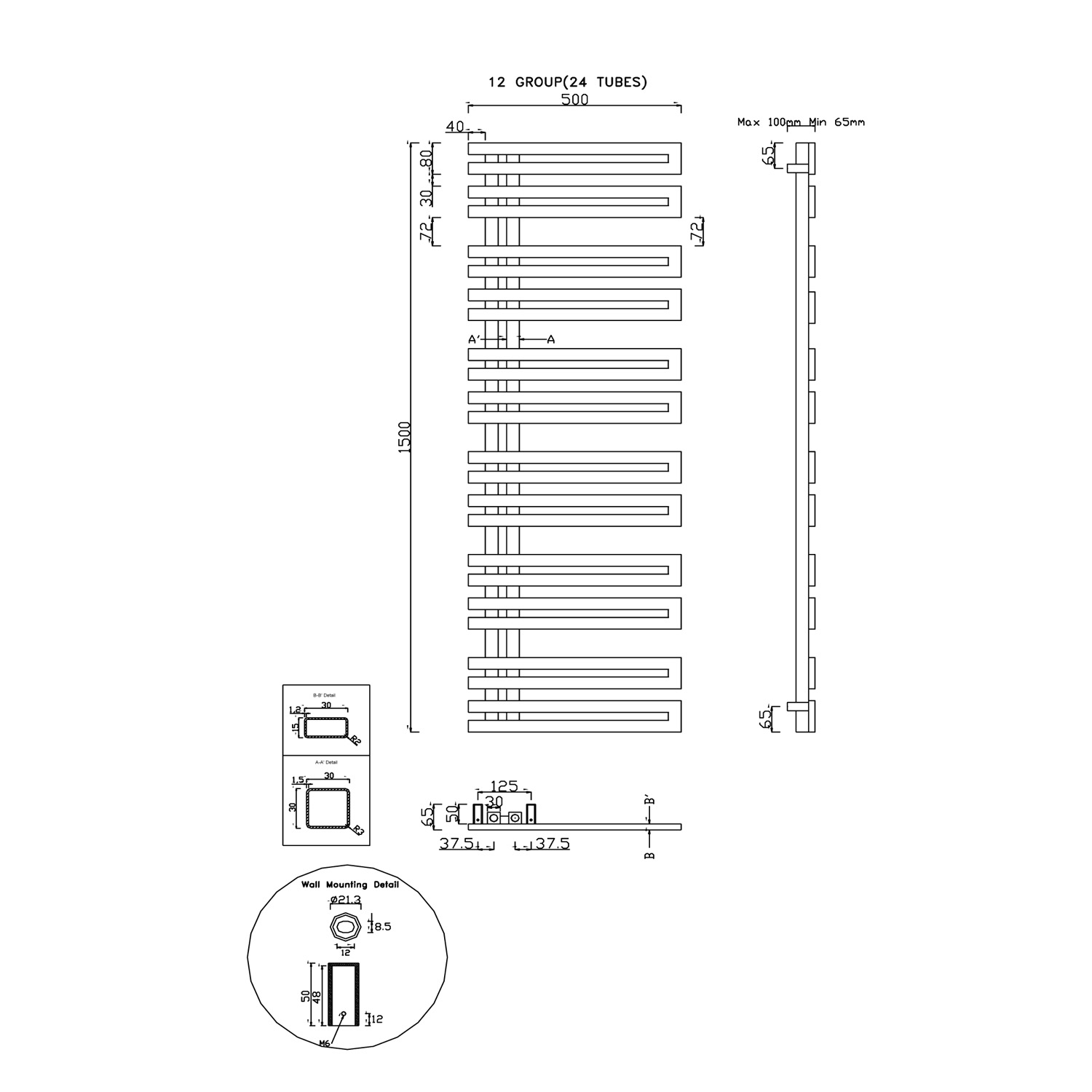 Sapho VOLGA otopné těleso 500x1500 mm, nerez mat NR515