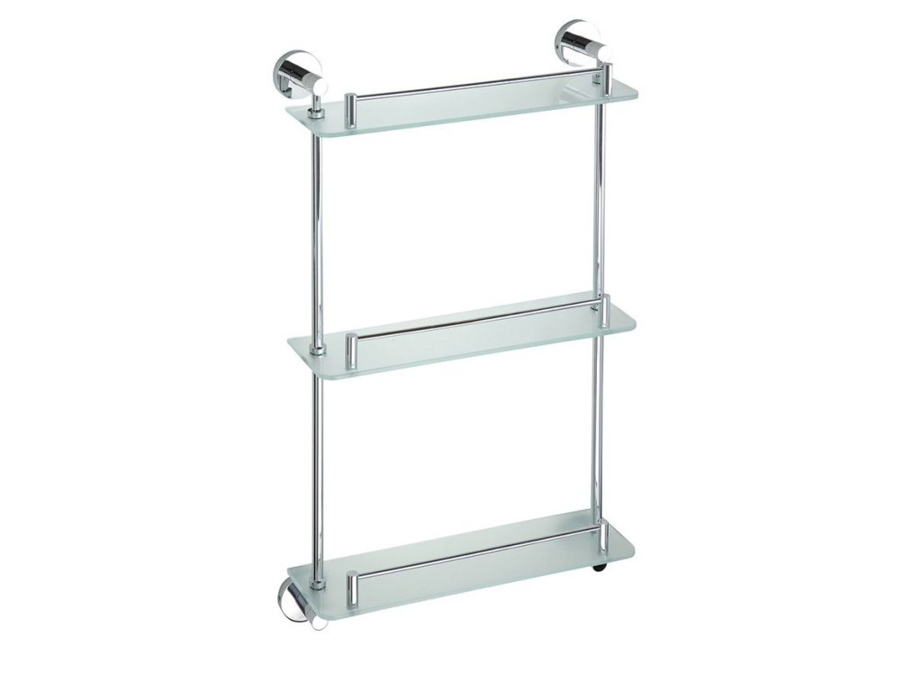 Sapho X-ROUND E skleněná polička trojitá s hrazdou 380x675x130mm, chrom XR608
