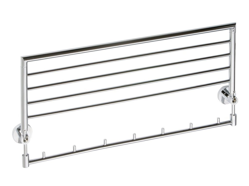 Sapho X-ROUND polička na ručníky výklopná s háčky 600mm, chrom XR422