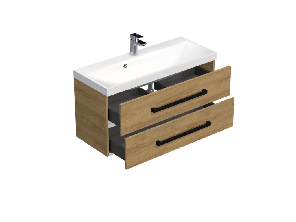SAT Koupelnová skříňka s černou úchytkou a umyvadlem SAT Cube Way 100x53x40 cm dub Hickory mat CUBE2C100ZDH