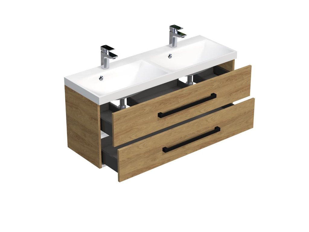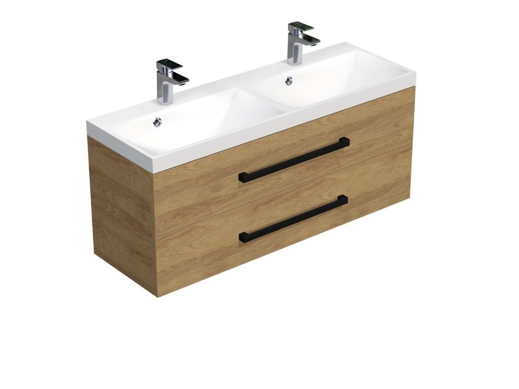 SAT Koupelnová skříňka s černou úchytkou a umyvadlem SAT Cube Way 120x47,5x40 cm dub Hickory mat CUBE2C120ZDH