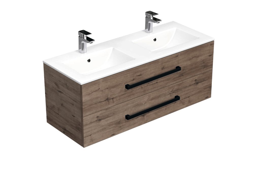 SAT Koupelnová skříňka s černou úchytkou a umyvadlem SAT Cube Way 120x53x46 cm dub Wellington mat CUBE46C1202DWMOD