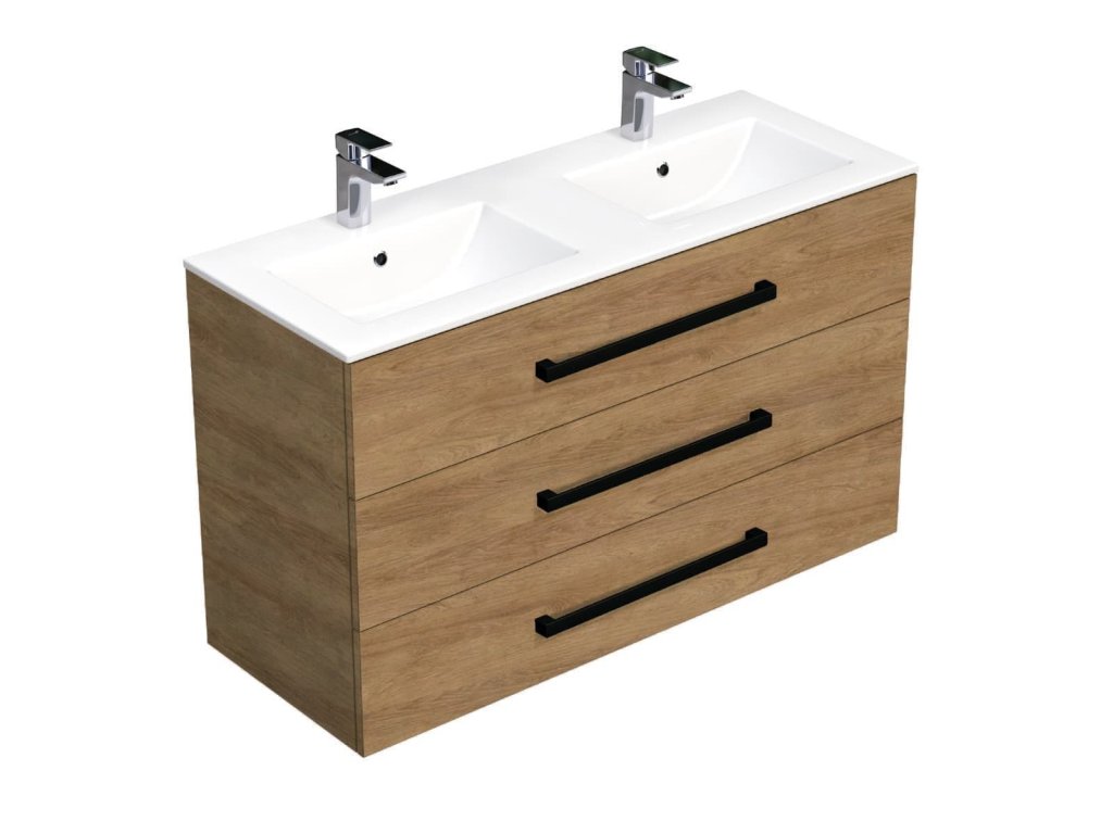 SAT Koupelnová skříňka s černou úchytkou a umyvadlem SAT Cube Way 120x71x46 cm dub Hickory mat CUBE46C1203DHMOD