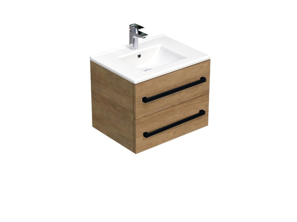 SAT Koupelnová skříňka s černou úchytkou a umyvadlem SAT Cube Way 60x53x46 cm dub Hickory mat CUBE46C602DHMOD