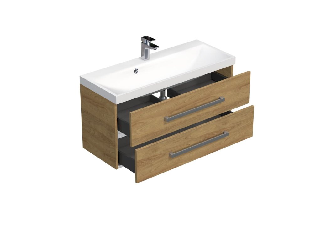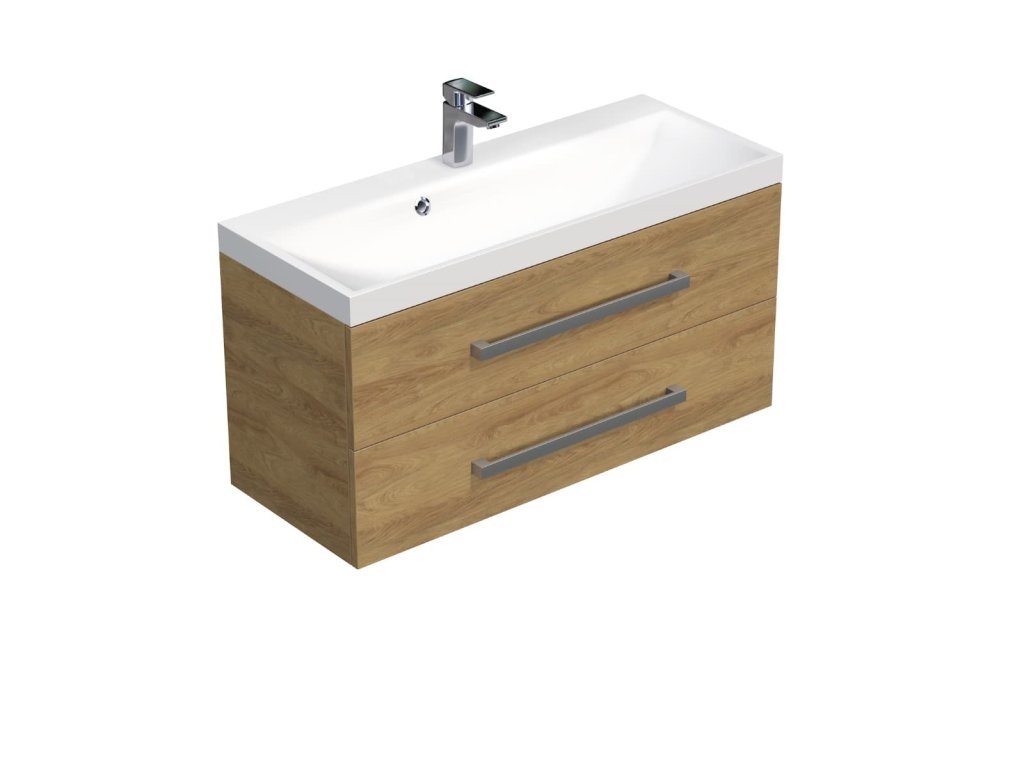 SAT Koupelnová skříňka s chromovými úchyty a umyvadlem SAT Cube Way 100x53x40 cm dub Hickory mat CUBE2100ZDH