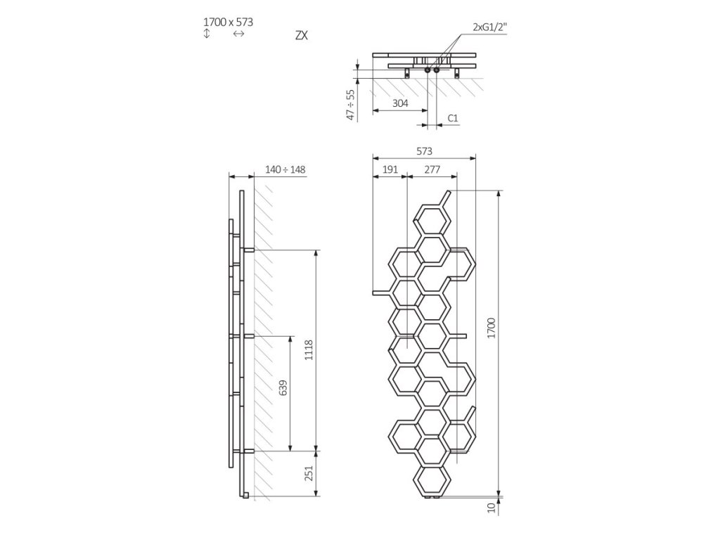 Radiátor Hex je unikátní tvarovaný radiátor, který spojuje funkčnost a vysokou estetickou úroveň. Nabízí nejnovější trendy moderního užitkového designu. Koncepce radiátoru HEX byla inspirována nepravidelnou strukturou rozrůstajícího se tkaniva na stěně. V případě zájmu o jiný rozměr nebo barevné provedení se podívejte i na TERMA Hex vodní designový radiátor.-