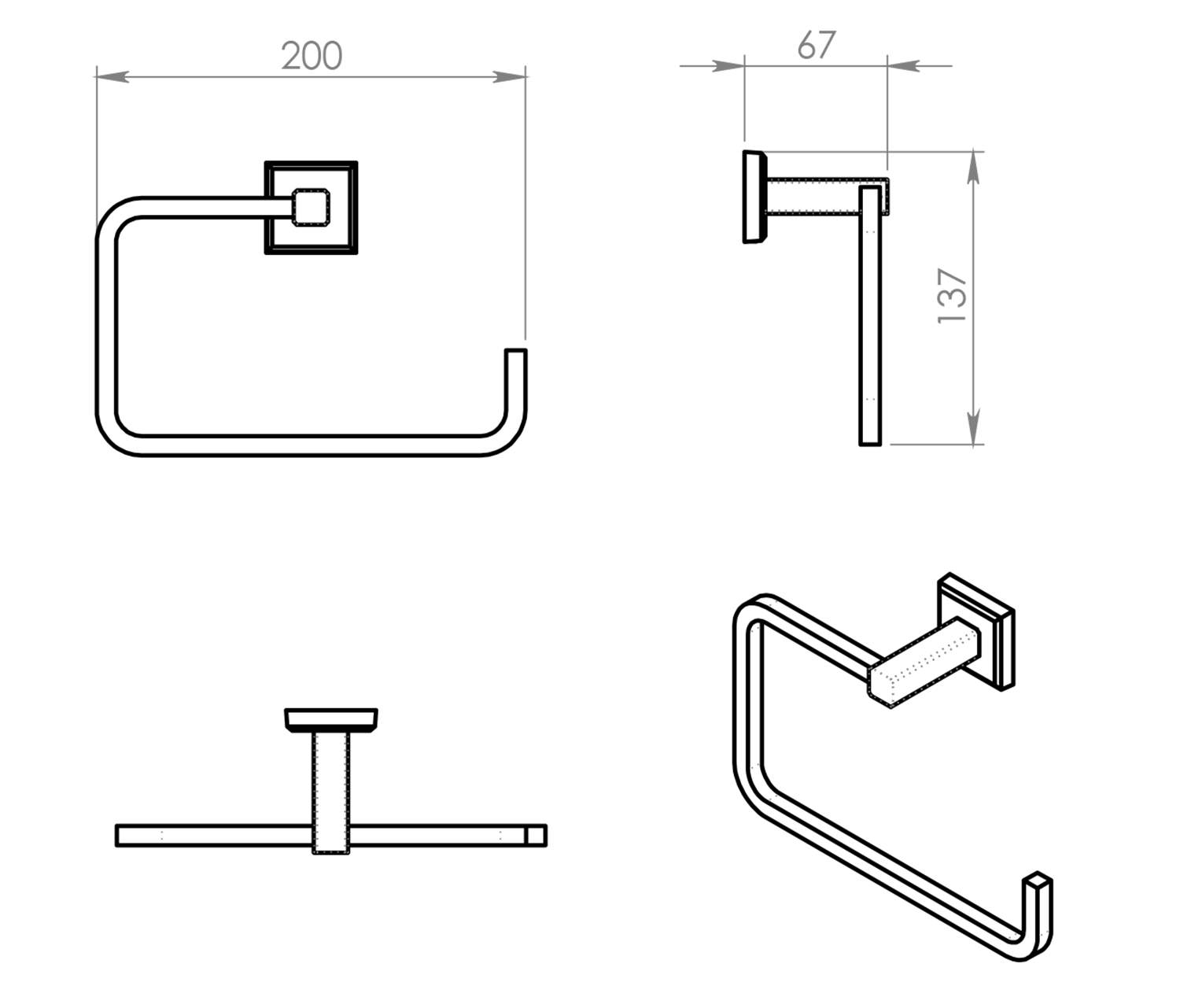 Malý hranatý úchyt na stěnu a štíhlé hranaté profily charakterizují sérii COLORADO. Doplňky lze na stěnu přivrtat nebo nalepit.