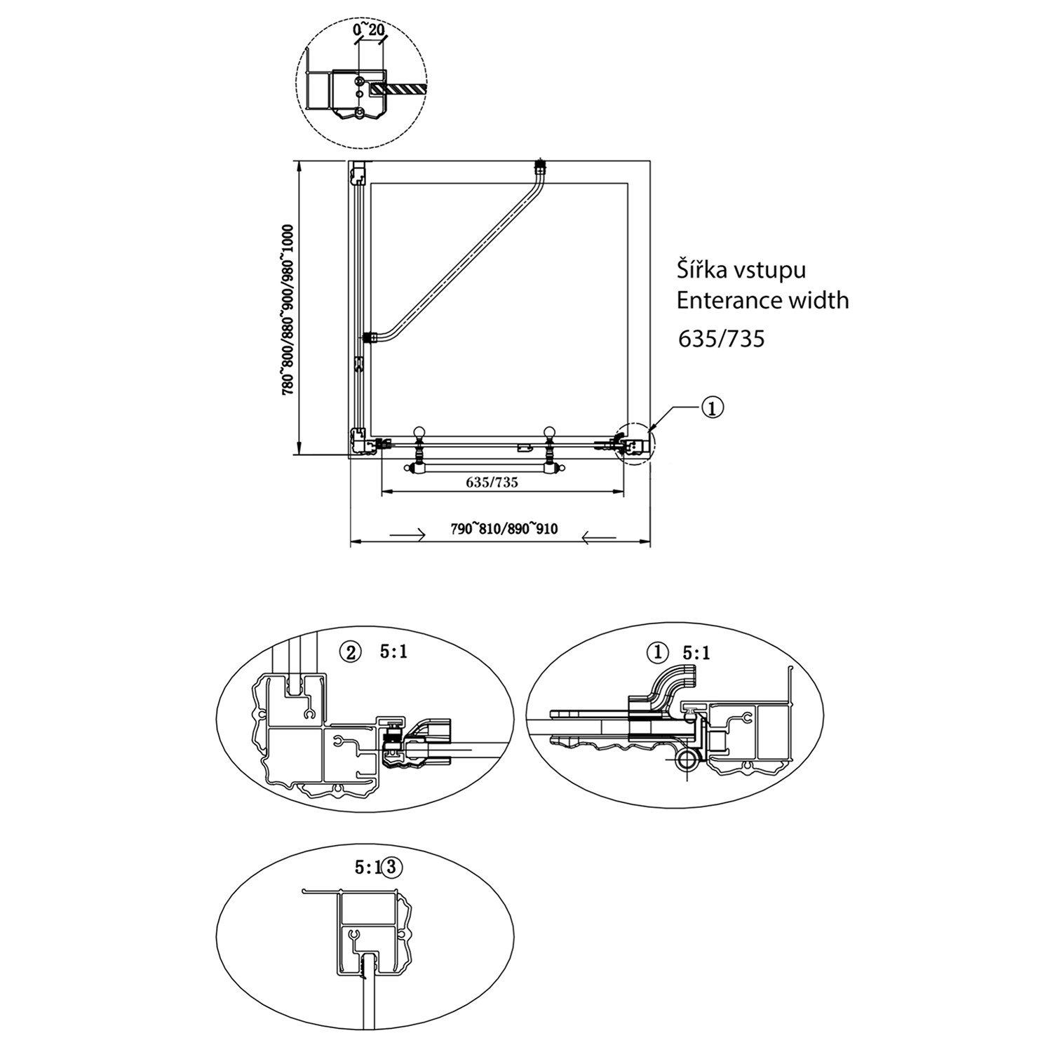 | Tvar: | Pevná stěna ke sprchovým dveřím |