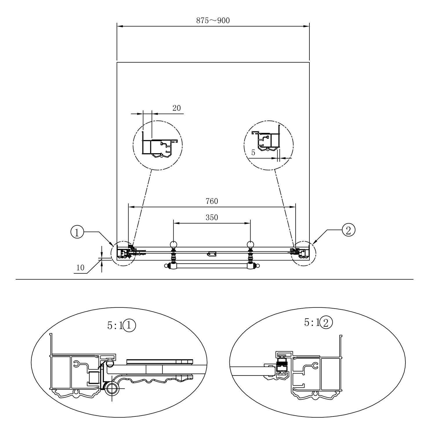 - Výška 1900 mm, s ozdobou na profilu 1950 mm