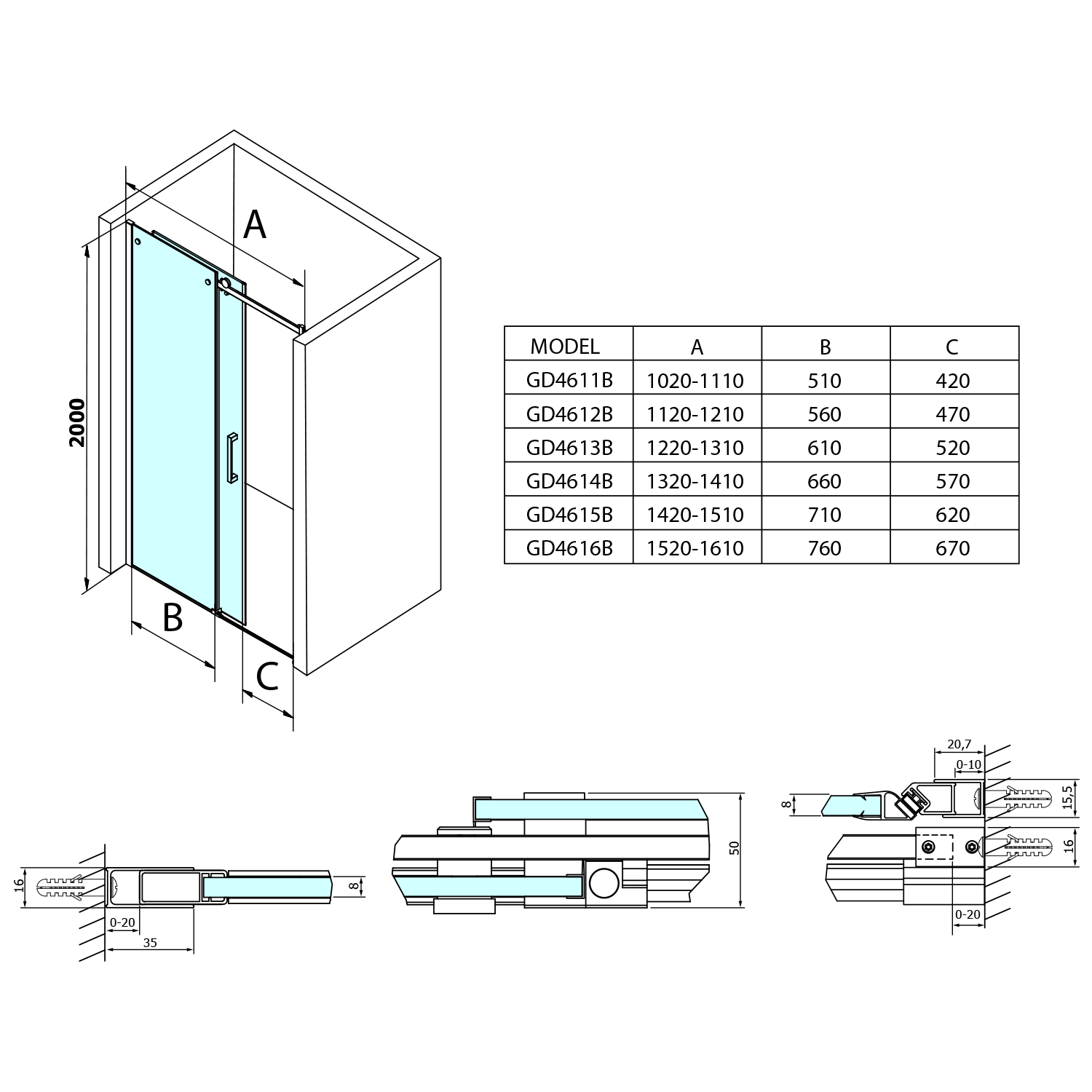 - Výška do 2000 mm