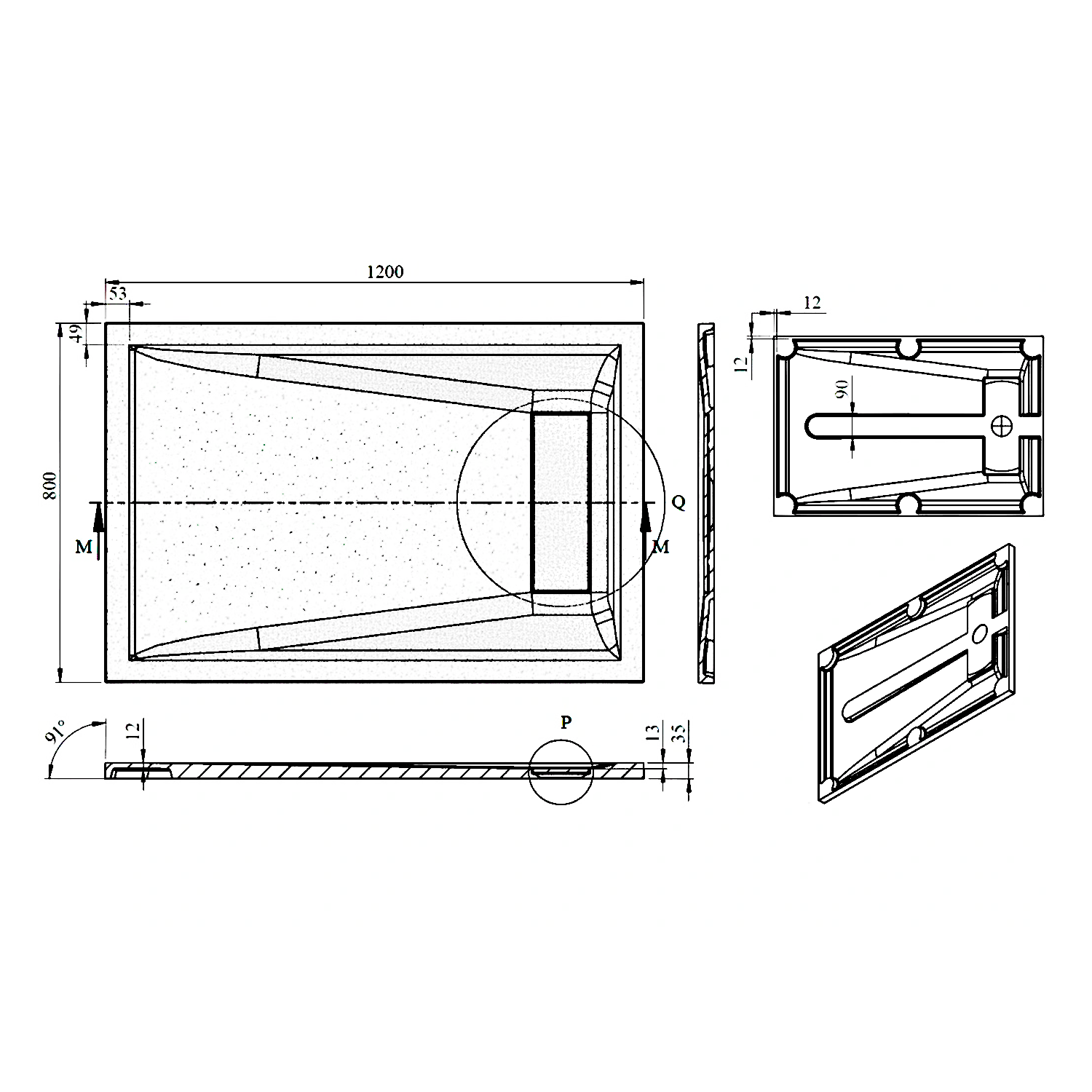 GELCO ELEA sprchová vanička litý mramor, 120x80cm, bílá PEL12080