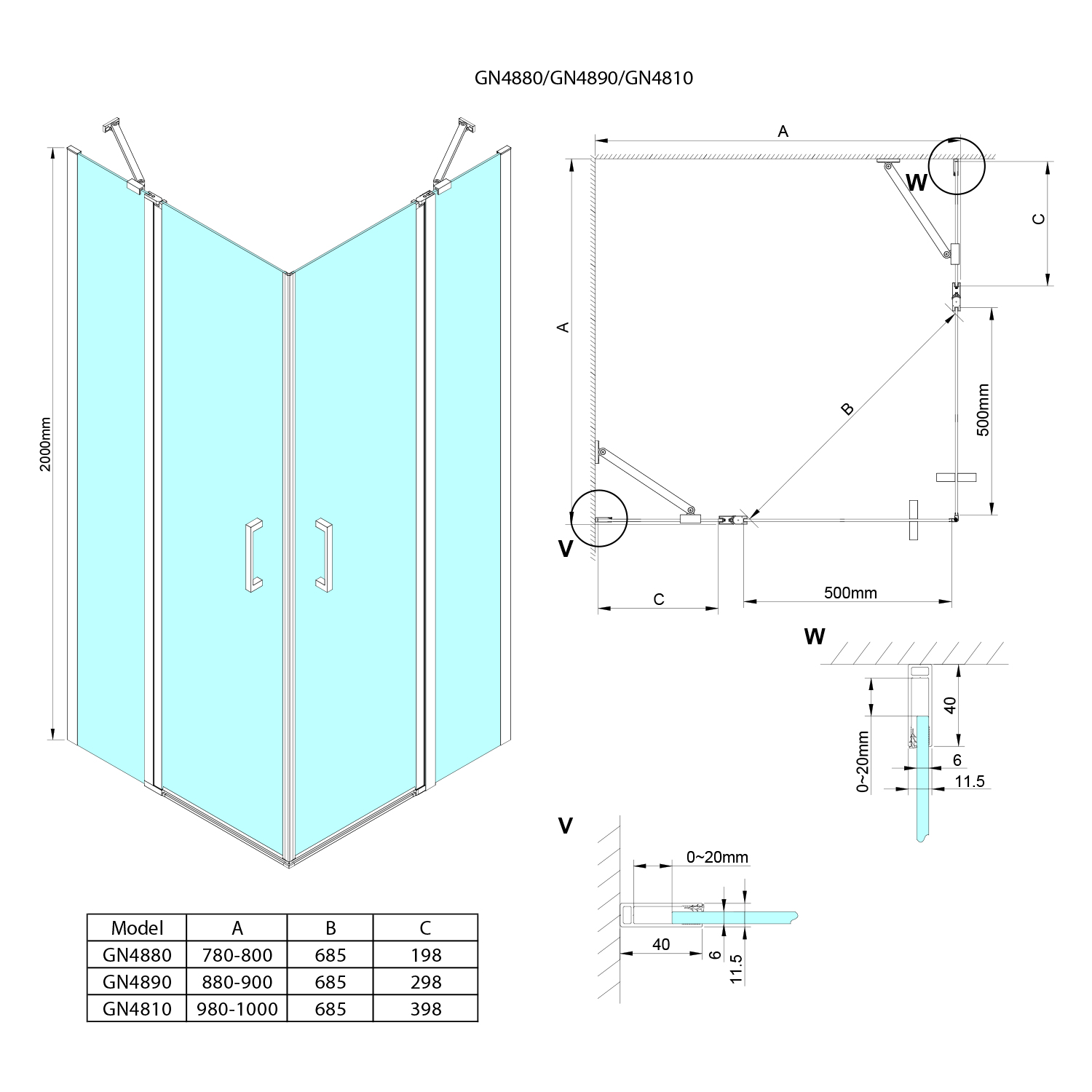 - Dveře je možno instalovat do niky nebo v kombinaci s boční stěnou