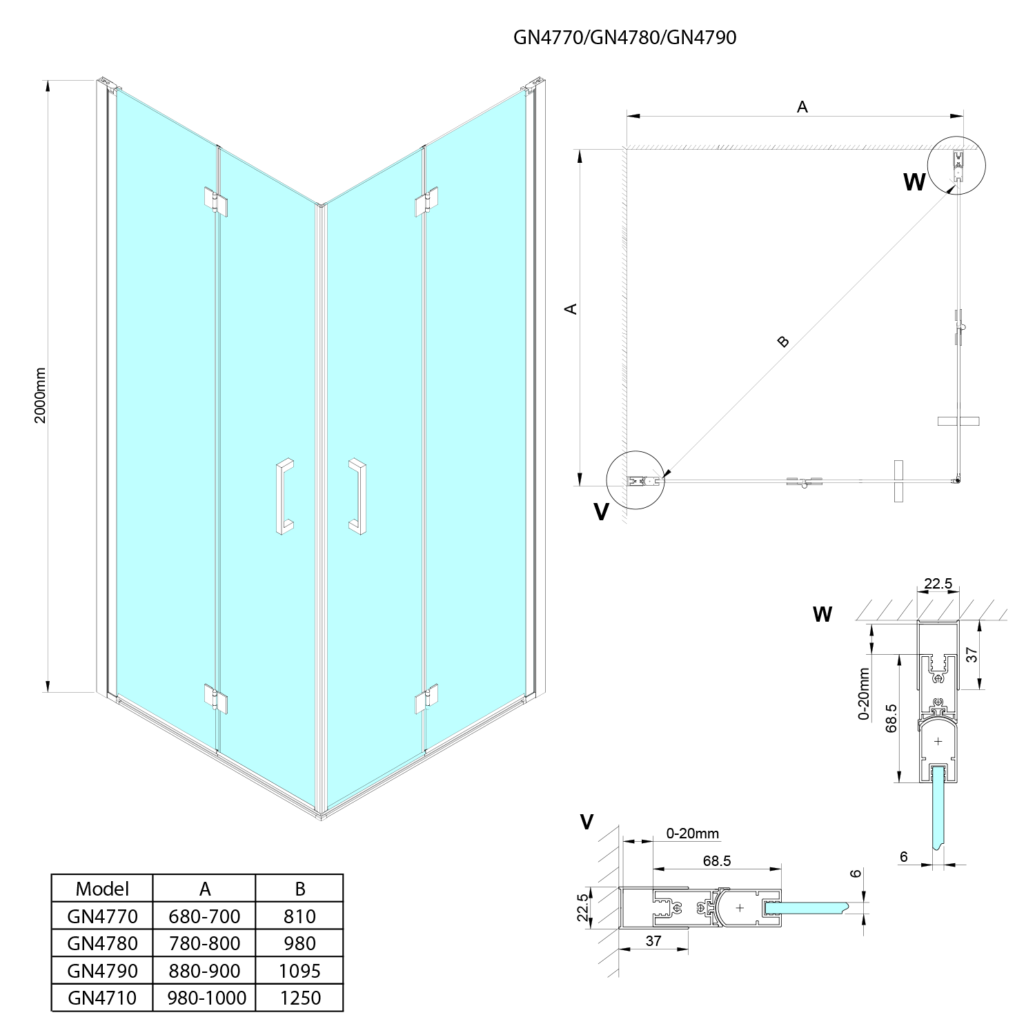 - Dveře skládací 700 - 900 mm umožňují složení ke stěně a úsporu místa v koupelně