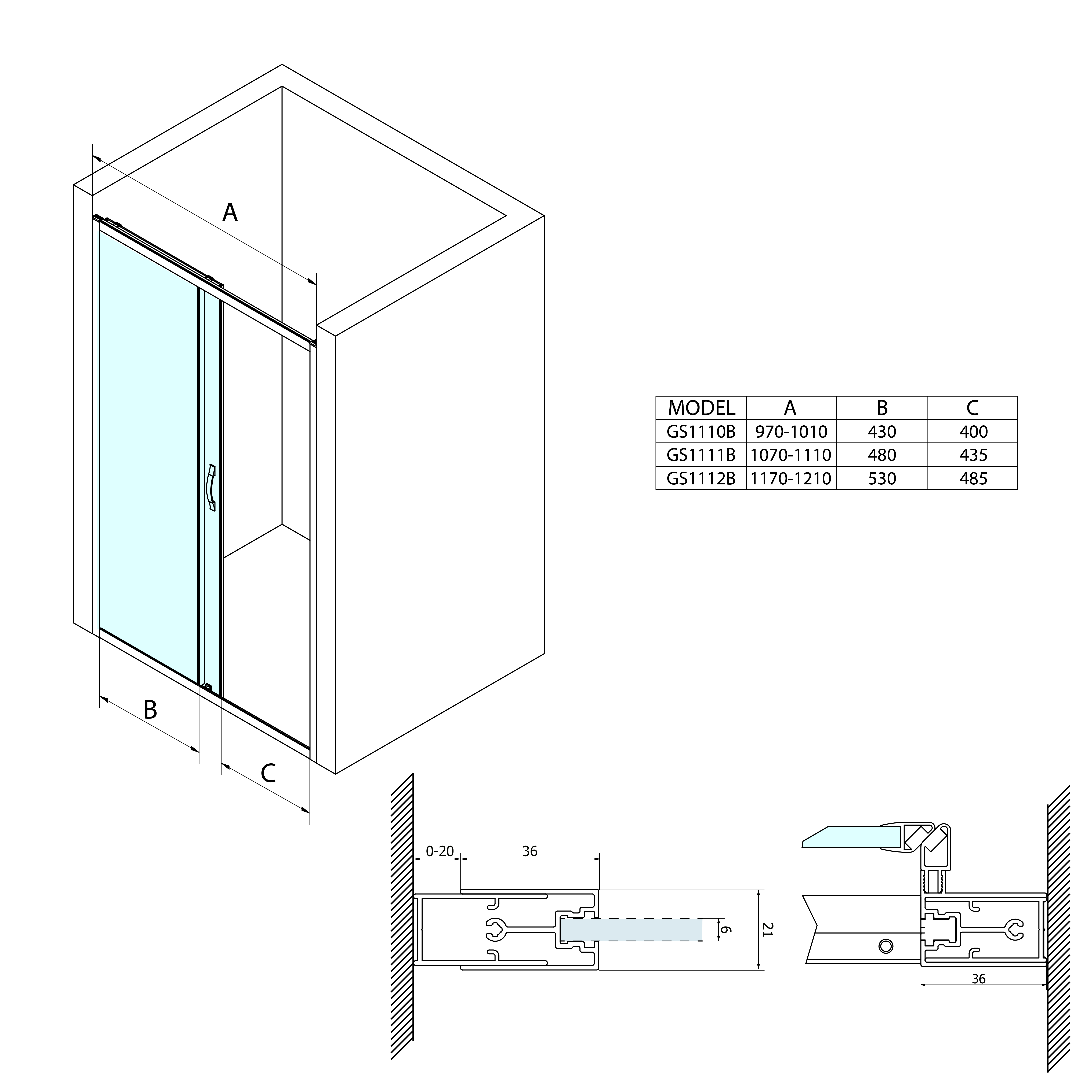 - Čtvercové a obdélníkové zástěny s rohovým vstupem vytvoříte spojením dvou posuvných dveří pro rohový vstup
