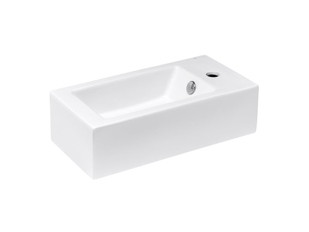 Umývátko s otvorem pro baterii vpravo o šířce 50 cm, hloubce 25 cm a výšce 14,4 cm. Balení bez sifonu a baterie. Montážní sadu je nutné dokoupit.Doplňkové parametry