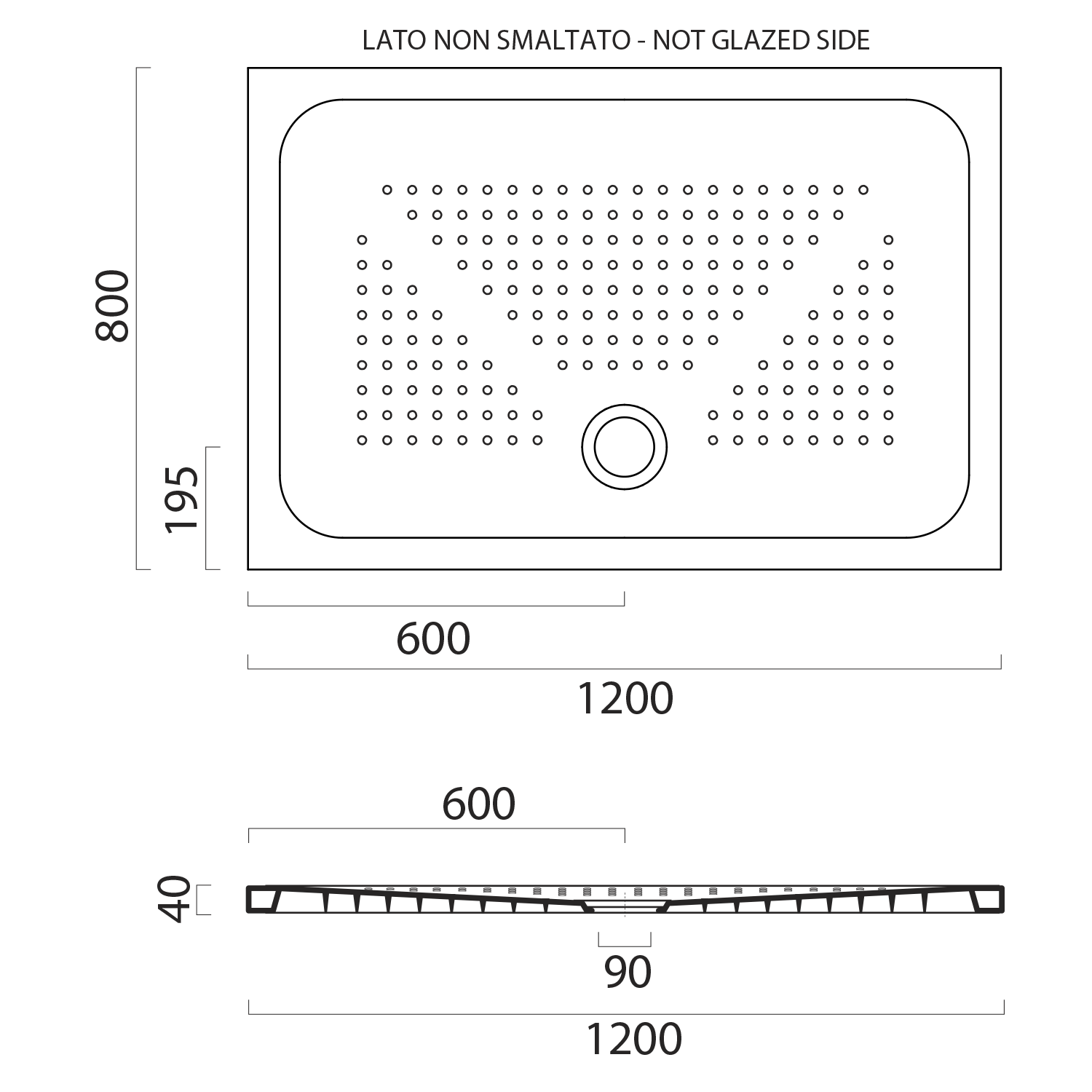 Boky vaniček, které jsou neglazované (určené k zazdění do zdi, či pod obklad), jsou na technickém výkresu označeny "not glazed side".