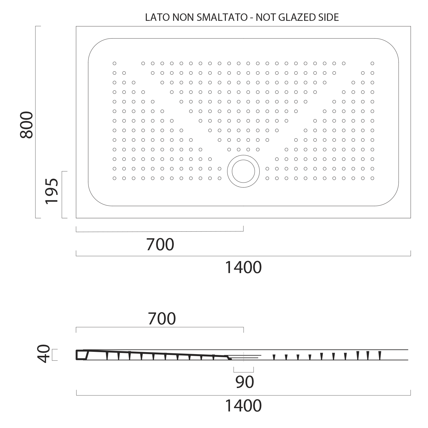 Boky vaniček, které jsou neglazované (určené k zazdění do zdi, či pod obklad), jsou na technickém výkresu označeny "not glazed side".