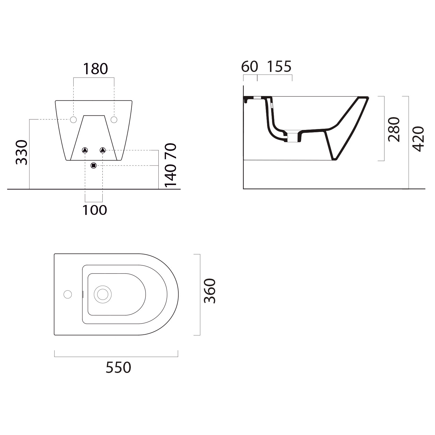 GSI KUBE X bidet závěsný 36x55cm, černá mat 9465126