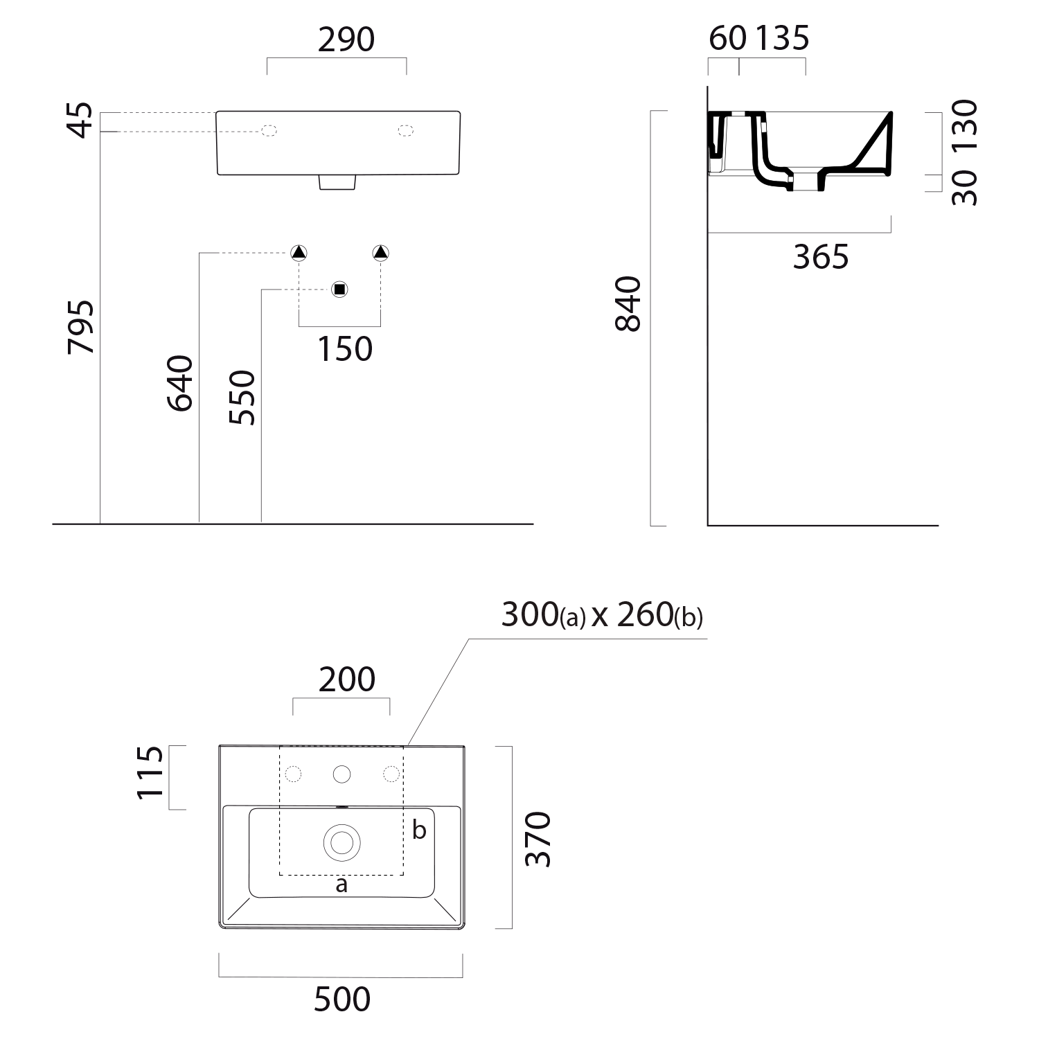 GSI KUBE X keramické umyvadlo 50x37cm, broušená spodní hrana, 3 otvory, bílá ExtraGlaze 94479311