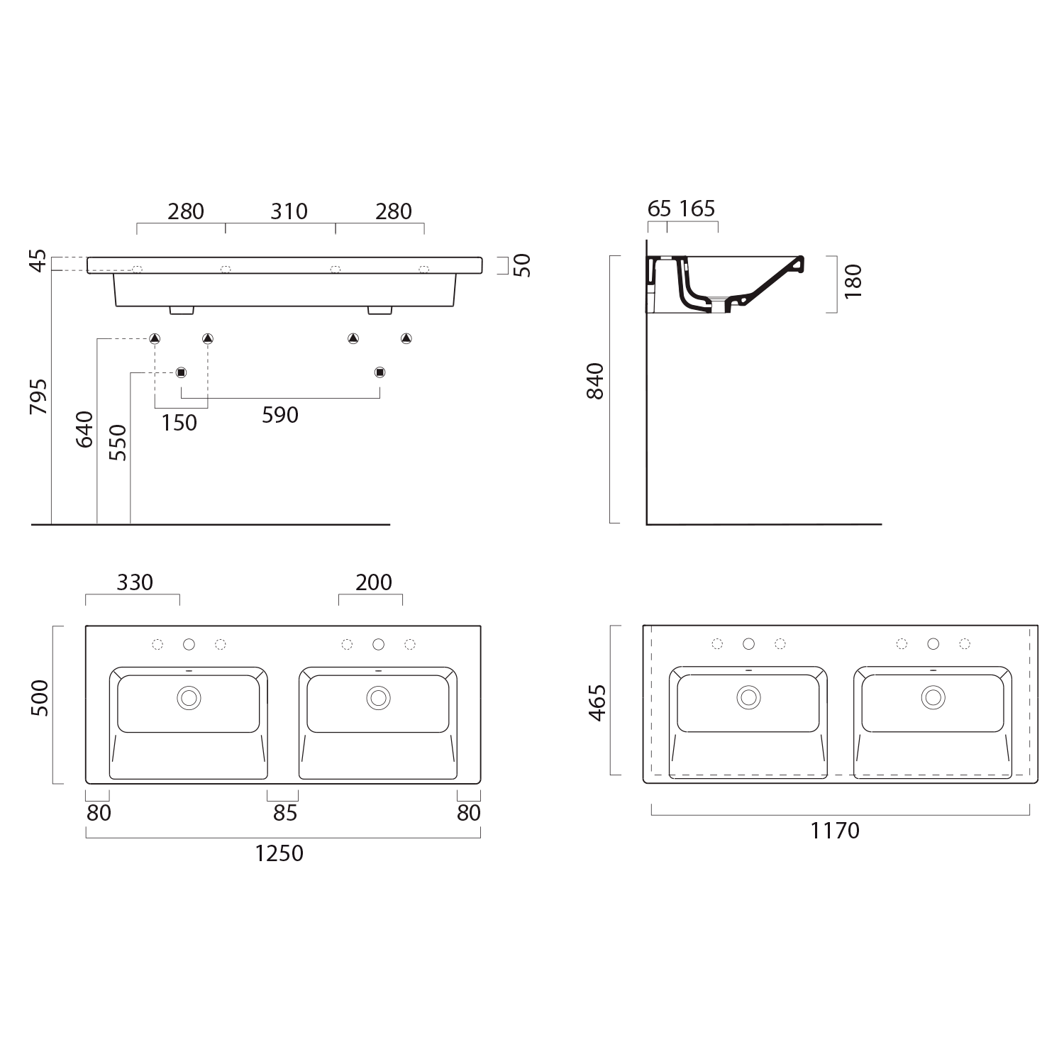 GSI NORM keramické dvojumyvadlo 125x50cm, 3 otvory, bílá ExtraGlaze 8627311