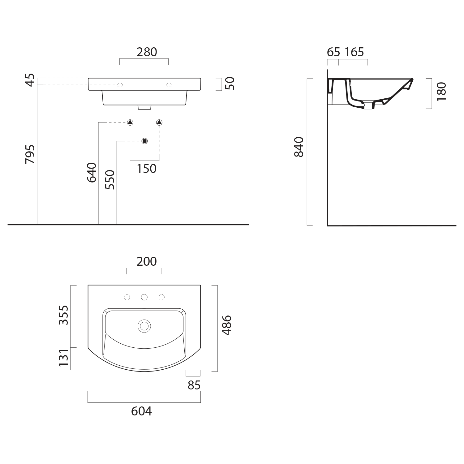 GSI NORM keramické umyvadlo 60x49cm, oblé, 3 otvory, bílá ExtraGlaze 8645311