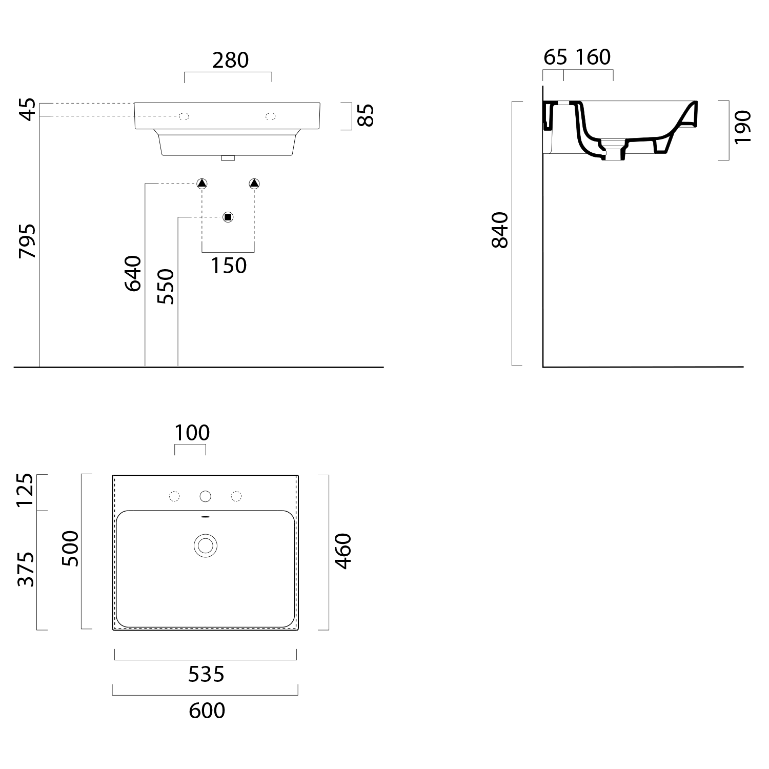 GSI NUBES keramické umyvadlo 60x50cm, 3 otvory, bílá ExtraGlaze 9631311