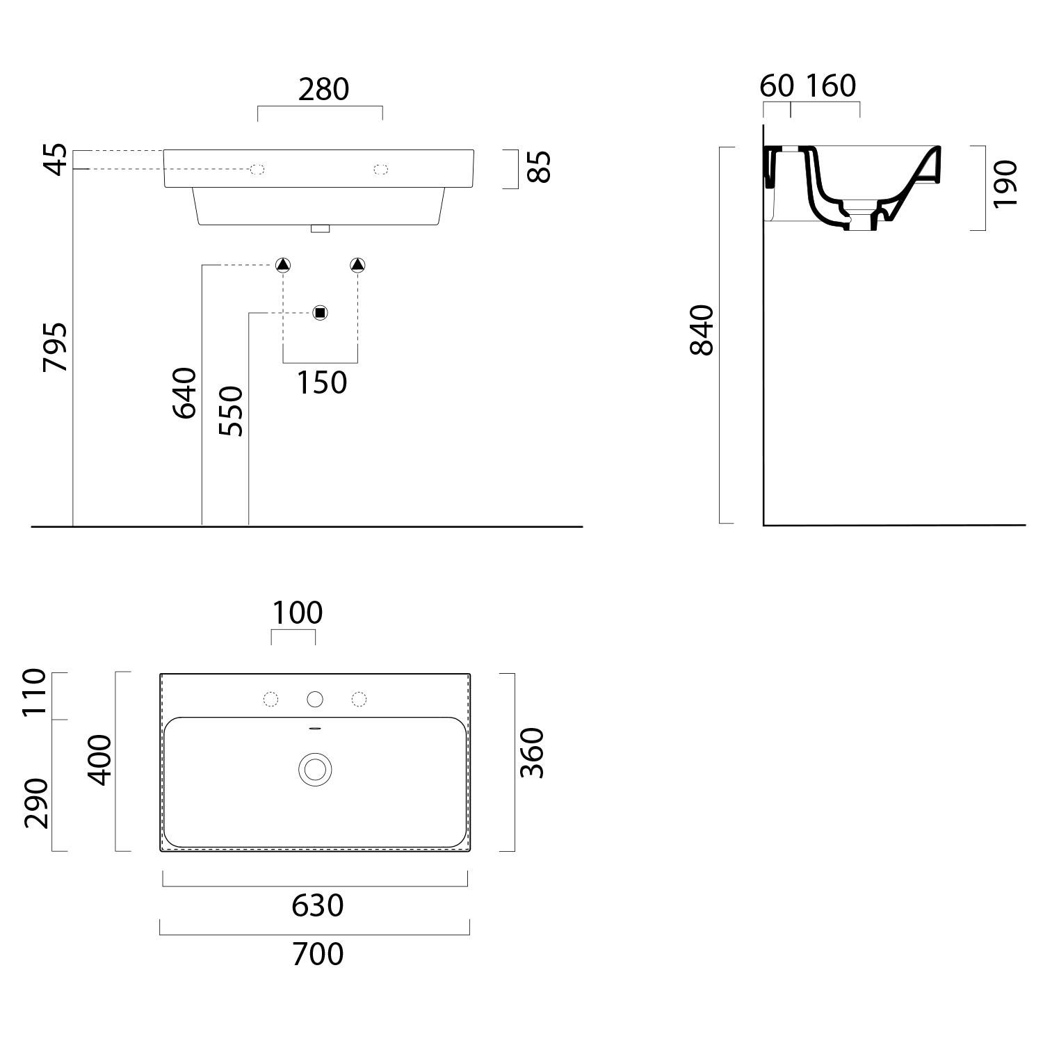 GSI NUBES keramické umyvadlo 70x40cm, bez otvoru, bílá ExtraGlaze 9687011