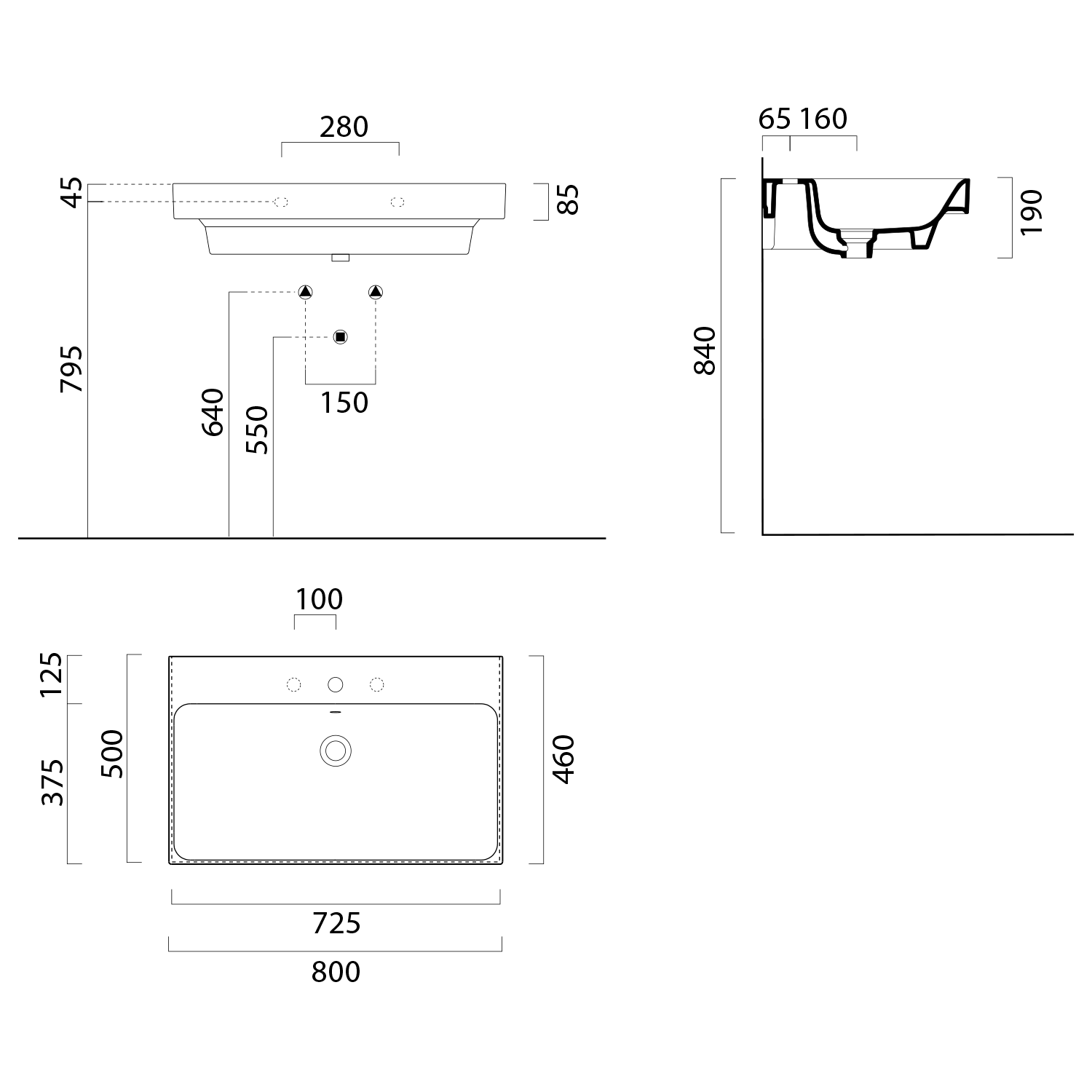 GSI NUBES keramické umyvadlo 80x50cm, broušená spodní hrana, 3 otvory, bílá ExtraGlaze 96229311