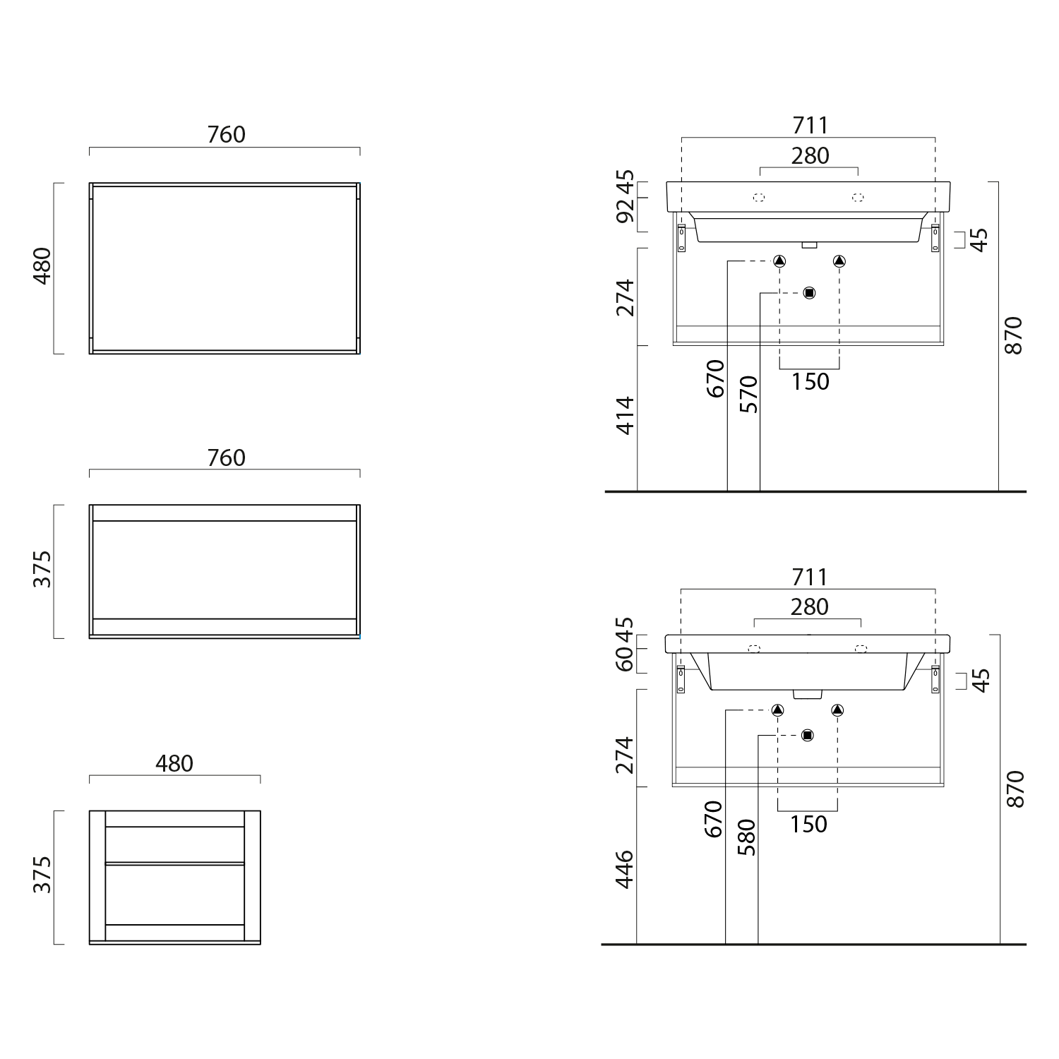 GSI NUBES/NORM konstrukce pod umyvadlo 80x50cm, černá mat MSN8028