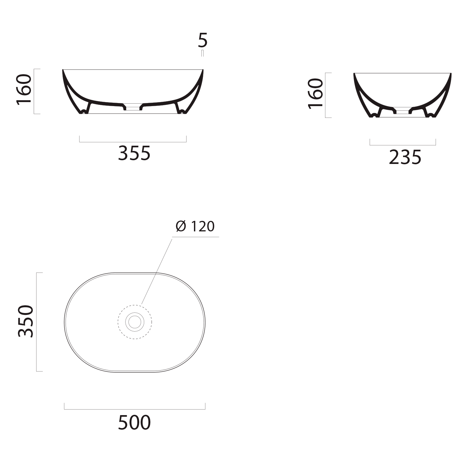 - Oválná a kulatá umyvadla se štíhlou hranou