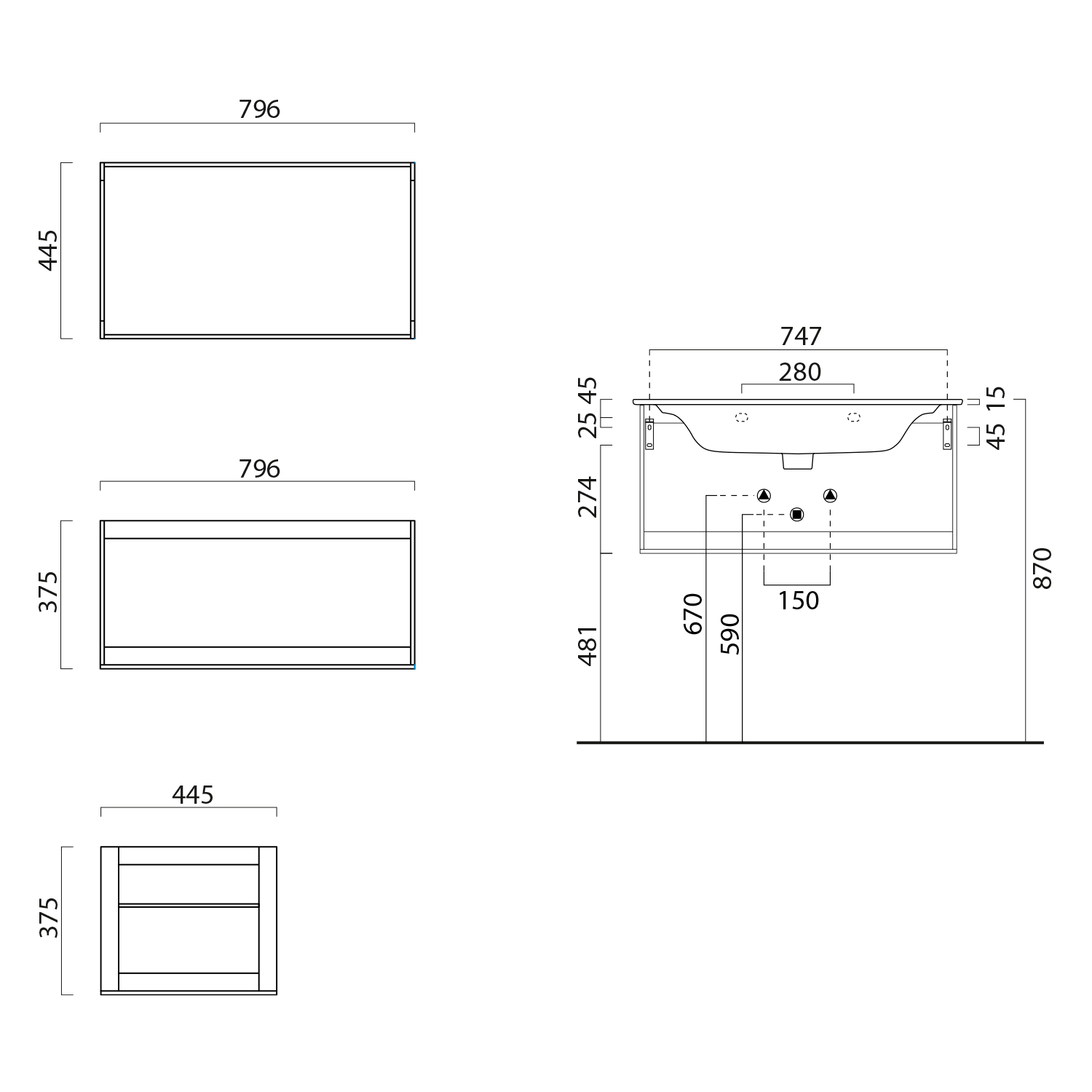 GSI PURA konstrukce pod umyvadlo 82x46cm, černá mat MSP8228