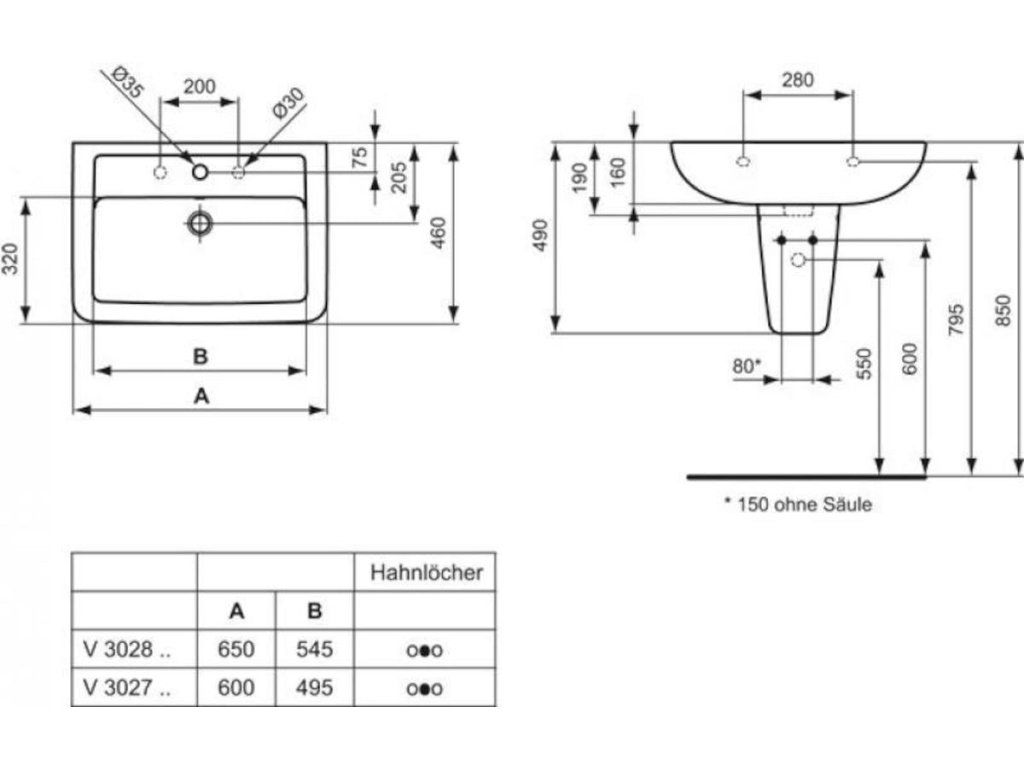 Umyvadlo s otvorem pro baterii uprostřed o šířce 60 cm, hloubce 46 cm a výšce 19 cm. Balení bez sifonu a baterie. Montážní sadu je nutné dokoupit.Doplňkové parametry