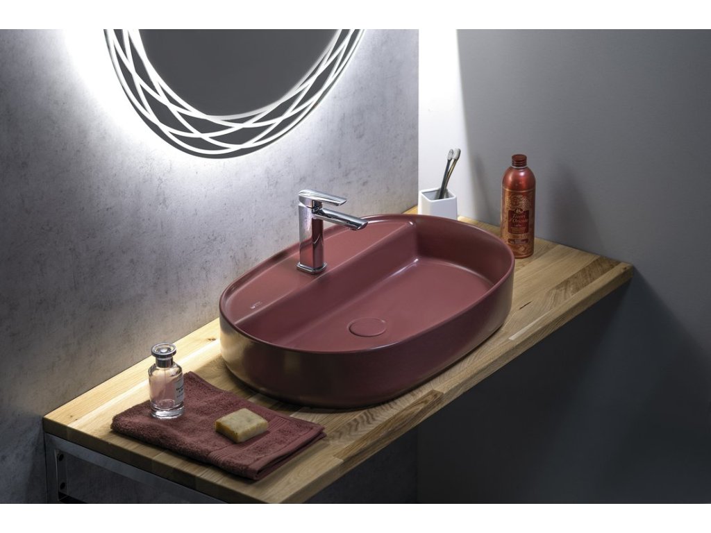 Isvea INFINITY OVAL keramické umyvadlo na desku, 60x40cm, maroon red 10NF65060-2R