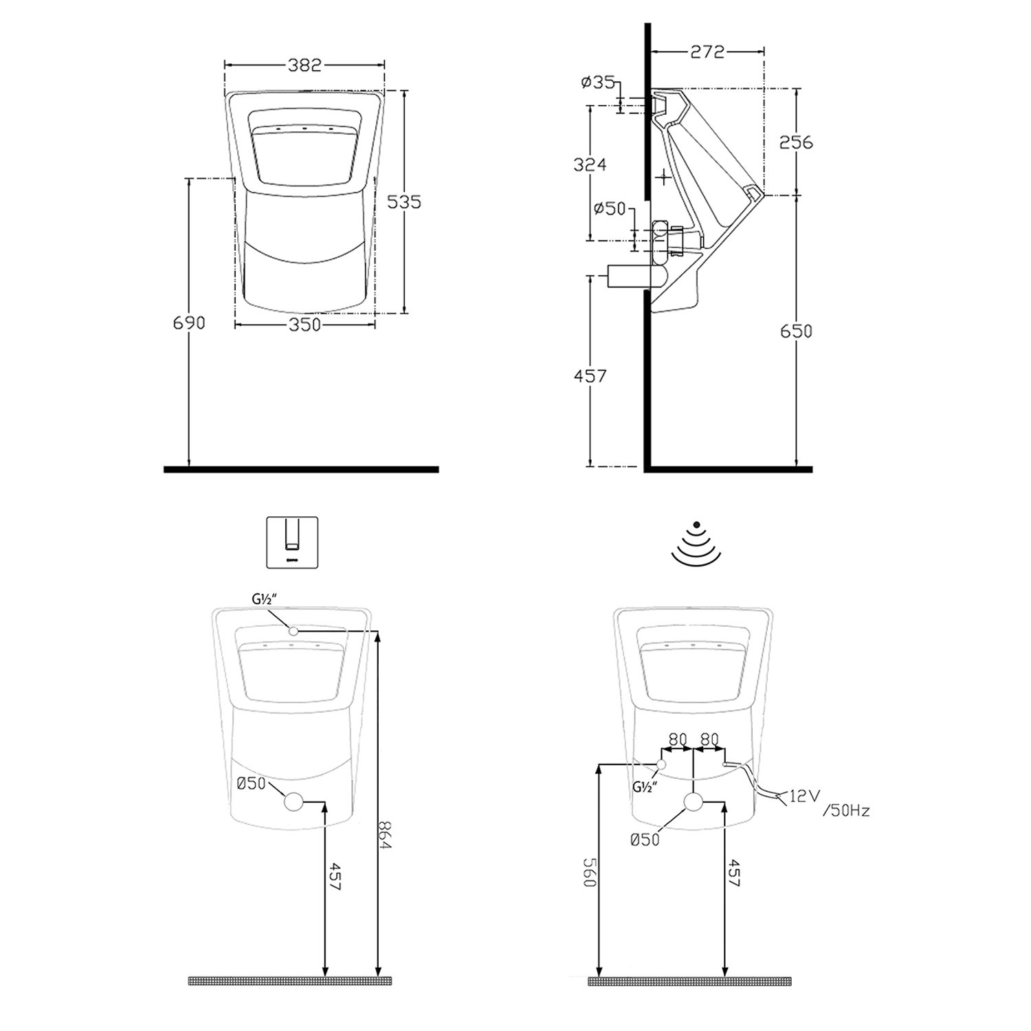 Isvea PURITY urinál se zakrytým přívodem vody, 38x53,5cm 10PL92002