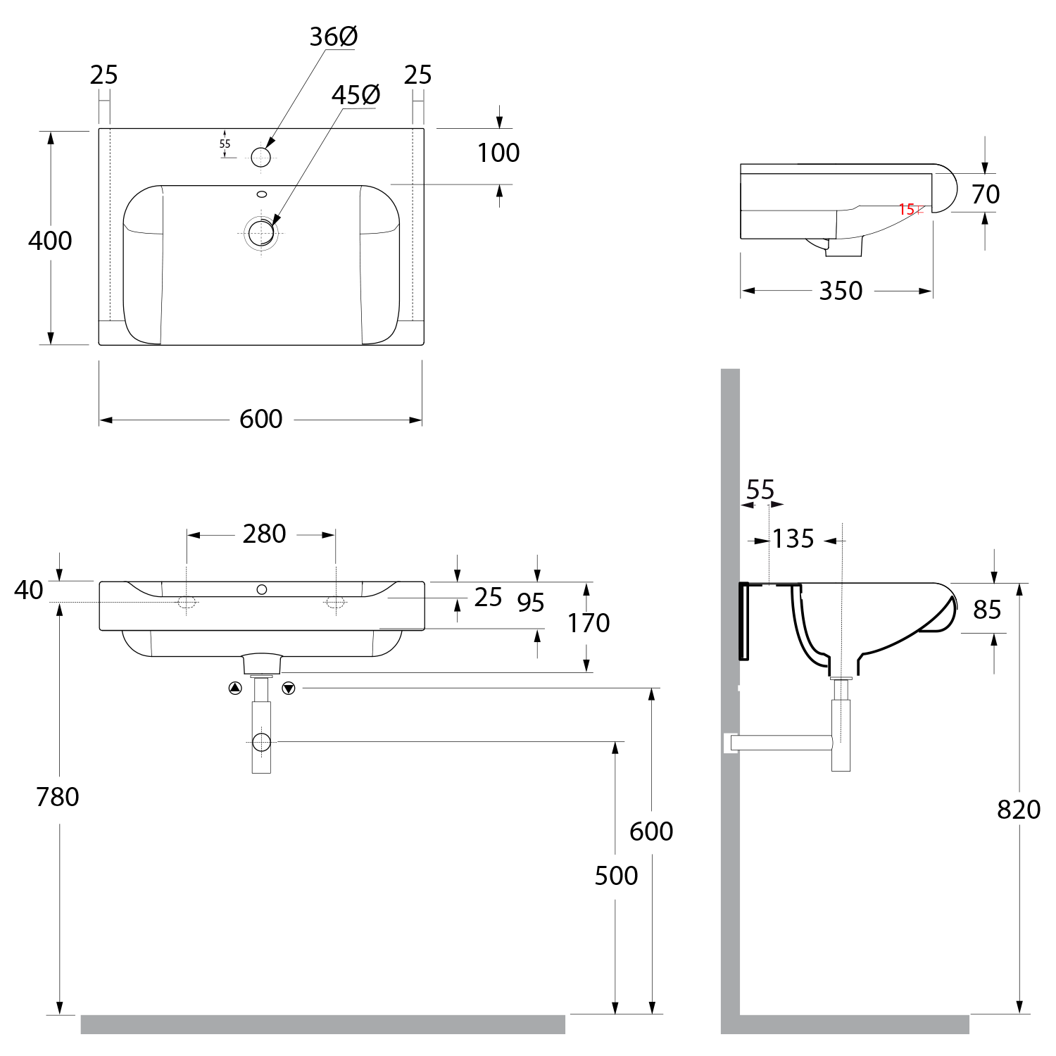 Kerasan INKA keramické umyvadlo polozápustné, 60x40cm, černá mat 341131