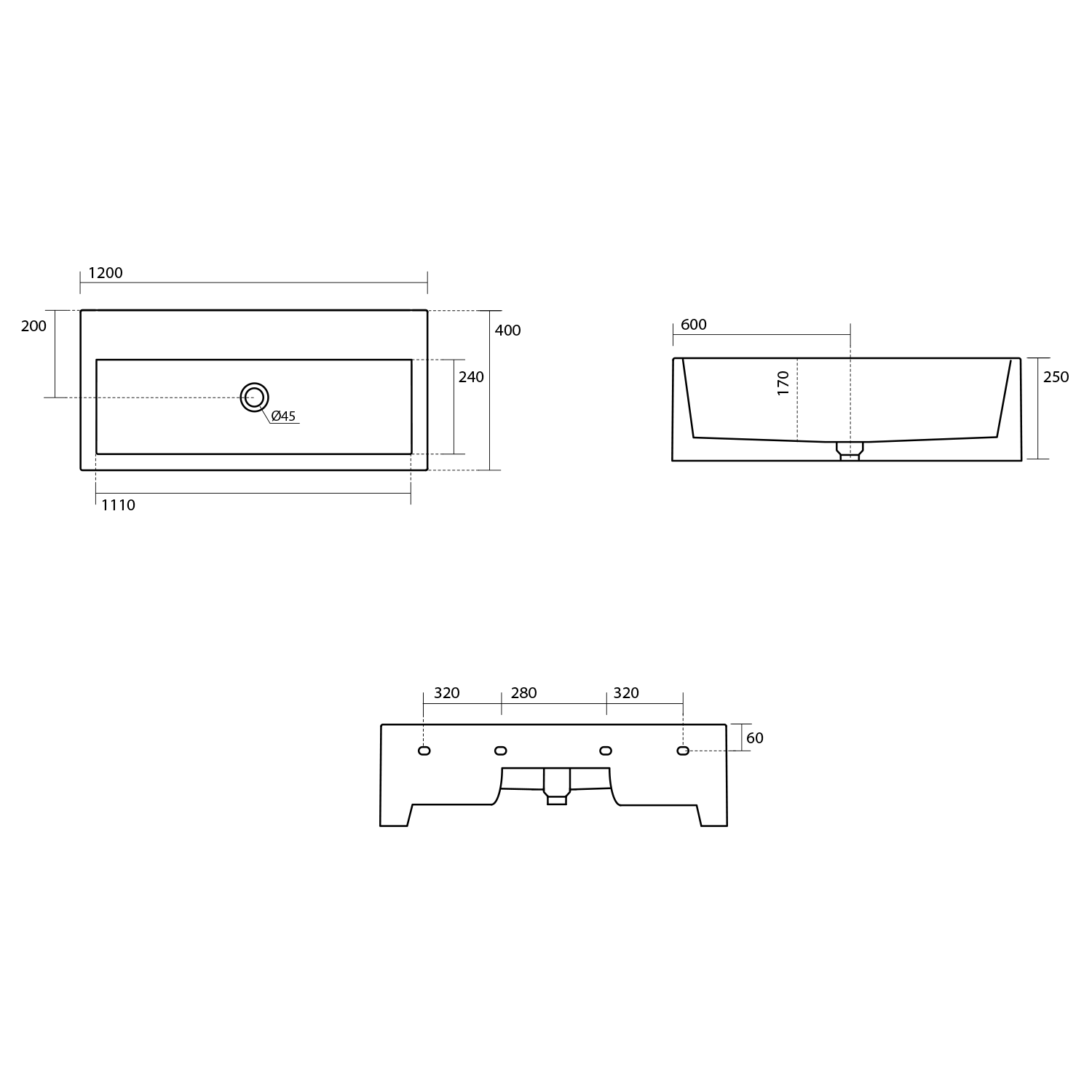 Kerasan KANAAL keramické umyvadlo 120x40cm, bílá 574201