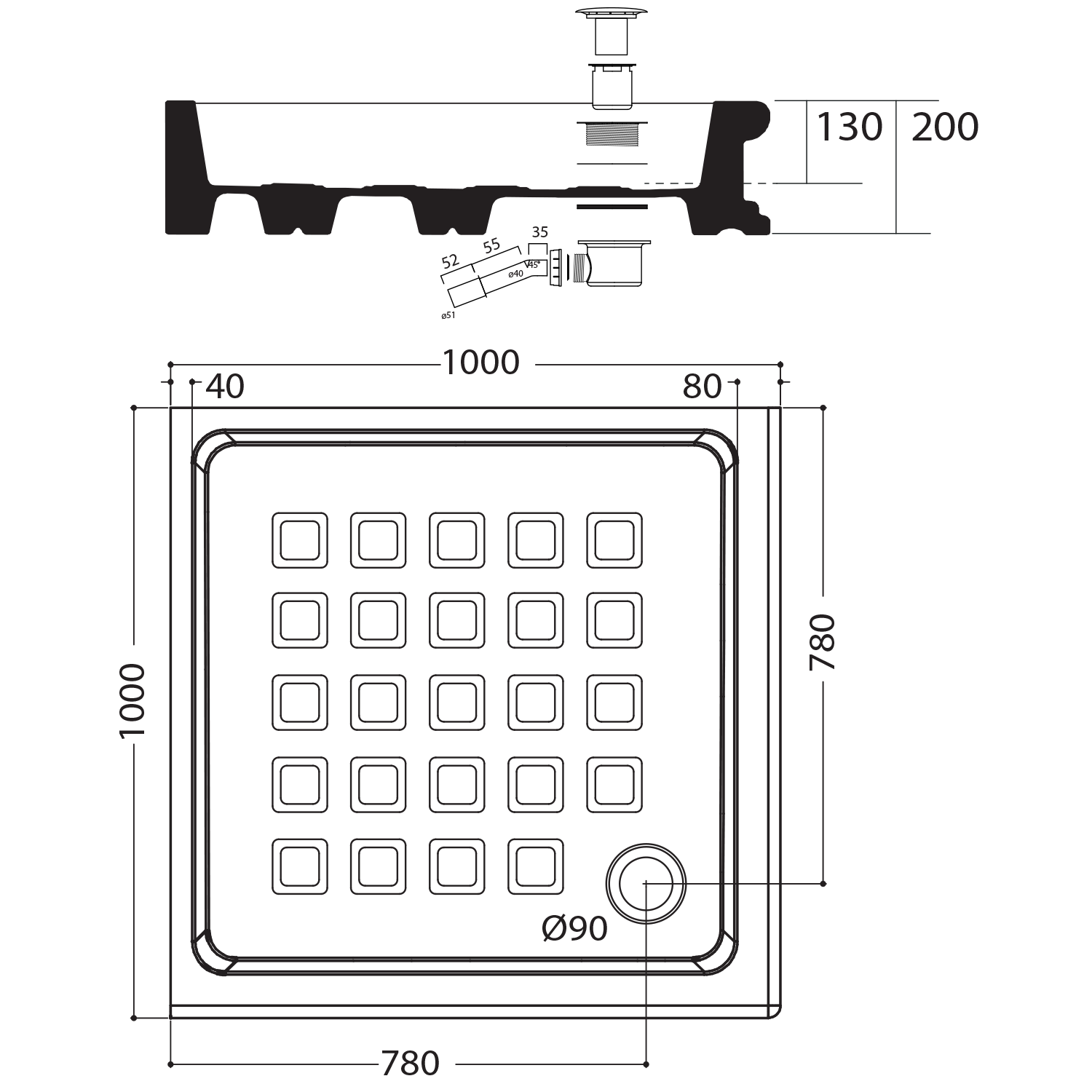 Kerasan RETRO keramická sprchová vanička, čtverec 100x100x20cm, bílá 134001