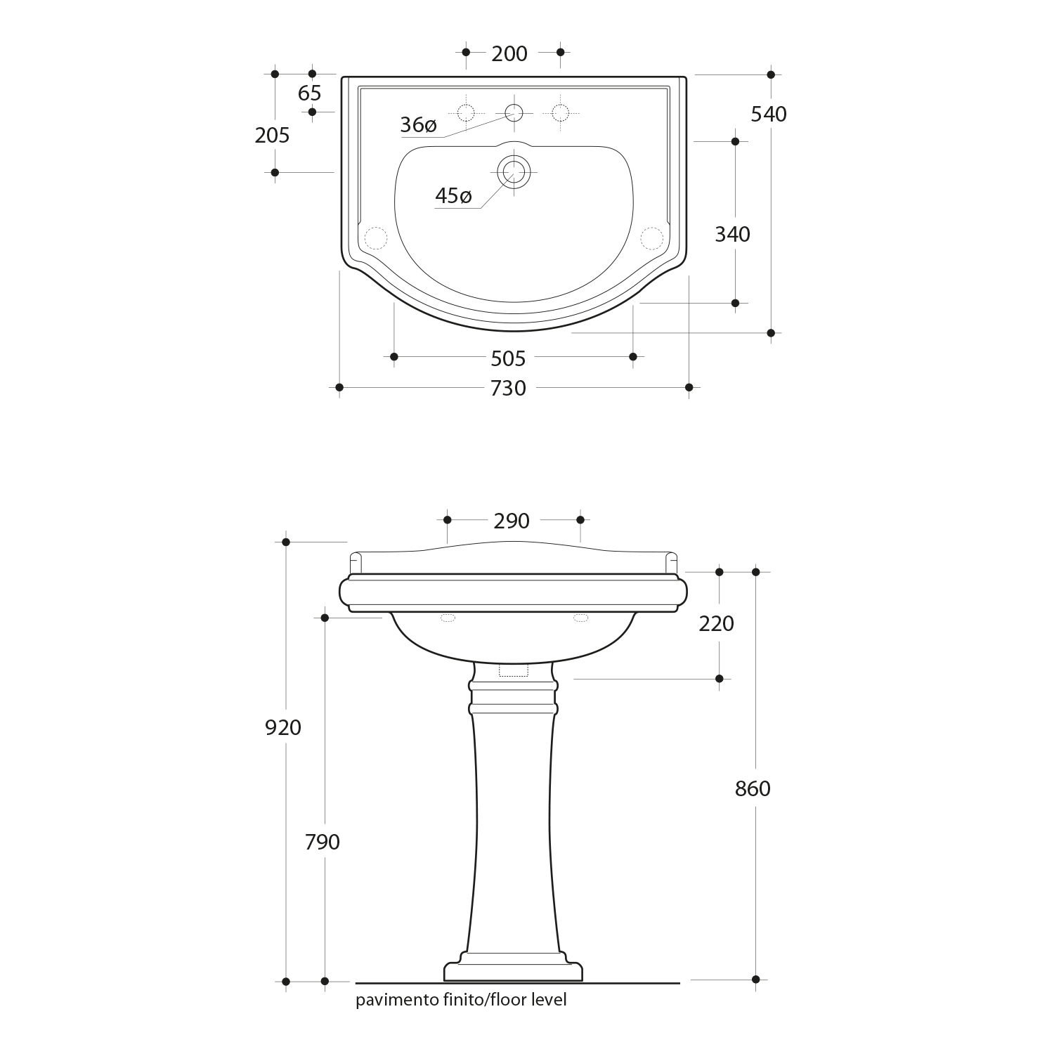 Kerasan RETRO keramické umyvadlo 73x54cm, 3 otvory, bílá 104701-3