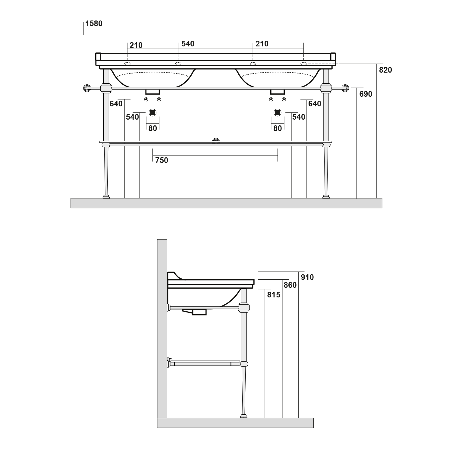 Kerasan WALDORF konstrukce pro dvojumyvadlo 150cm se skleněnou poličkou, chrom 9195K1