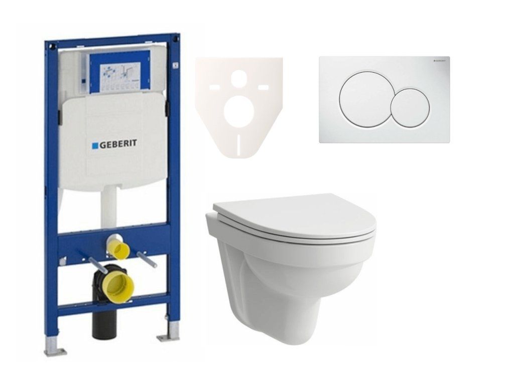 Závěsný WC set - sada obsahuje modul do lehkých stěn / předstěnová, WC nádržku Geberit a WC sedátko. WC prkénko je vyrobeno z materiálu Duroplast. Ovládací tlačítko je z materiálu plast a je v barevném provedení bílá.Doplňkové parametry