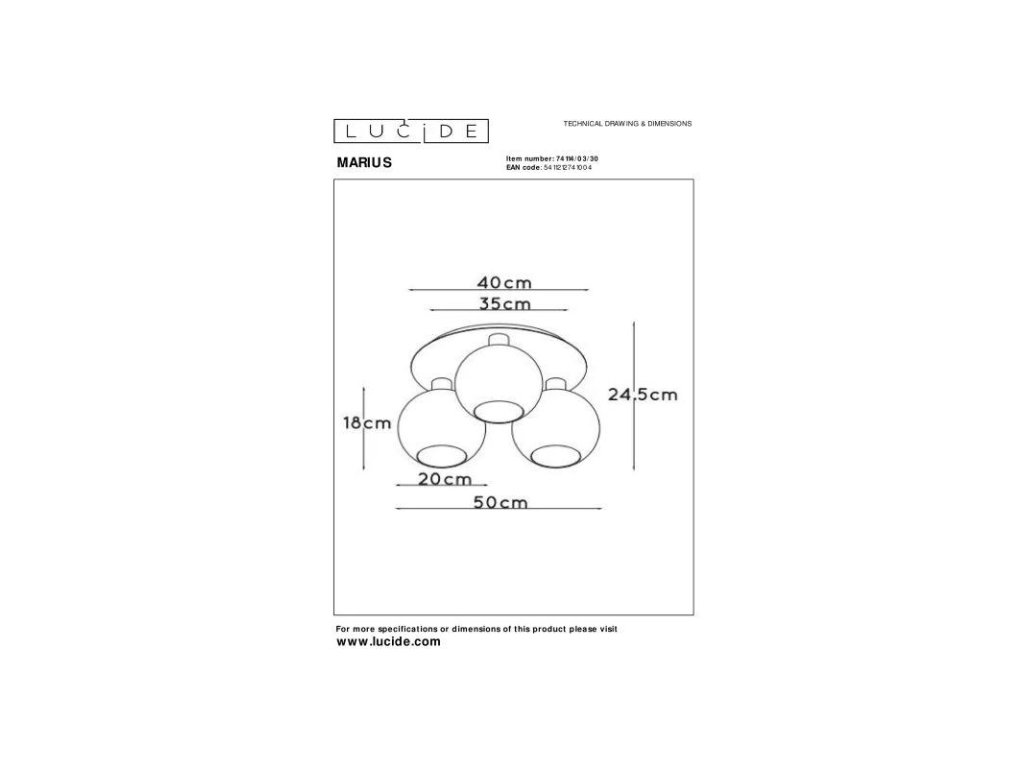 Kdo je ta diva v trojím vyhotovení? Těší mě, že vás mohu seznámit, jmenuji se Marius. Díky svému retro vzhledu je toto stropní svítidlo zde, aby zůstalo i v elegantním moderním interiéru. Hravě ukazuje svou tvář v podobě žárovky obklopené kouřovým sklem. Marius s průměrem 50 centimetrů a výškou 22 centimetrů nepřehlédnete, ani když visí vysoko a suchý od vašeho stropu. Připojením k externímu stmívači ovládáte výkon jeho světla v 1-2-3.Doplňkové parametry